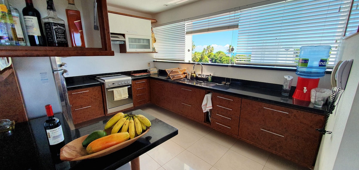 Hela lägenheten (våning 4), havsutsikt och wifi (350 mbps i genomsnitt). Nära till stranden och det största bohemiska distriktet i staden (nära till "acarajé da Dinha"). Privat garage, 2 hissar, pool, OMO tvätt (med app). Reception dygnet runt Köksredskap, kylskåp, elspis, smörgåsmaskin, fläkt, mixer, mikrovågsugn och vattenfilter; säng och badlakan för 2 personer; elektriskt strykjärn, luftkonditionering i sovrummet. 32-tums TV (Chrome cast), böcker. Elektrisk dusch. Gym.
