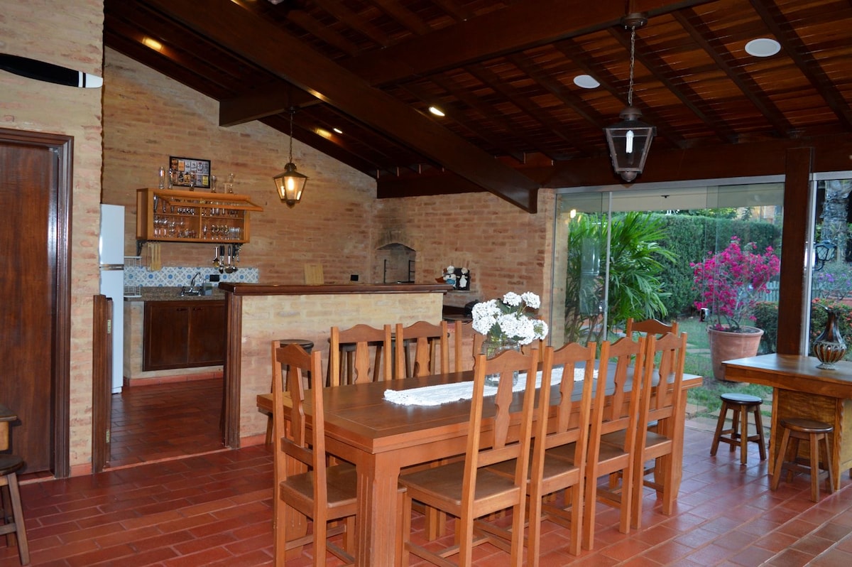 Trevligt hus med uppvärmd pool (solvärme) , uppvärmd jacuzzi (soluppvärmning) för upp till 08 personer med hydromassage, pizzaugn, vedspis, grill, luftkonditionering i vardagsrummet och sovrummen, ett bra ställe för dig att njuta av stora stunder med din familj.