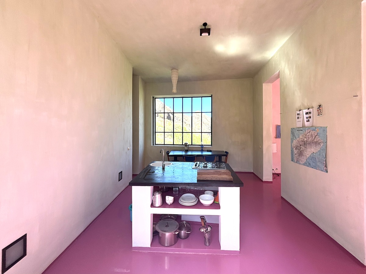 Kasa Surf ligger i en mycket lugn miljö, vaggad av vågorna, och erbjuder en enastående utsikt över havet och bergen. Stranden och kuststigen ligger inom 80 m. Kasasurf är en smakfullt designad ecolodge som är sömlöst integrerad i den naturliga omgivningen på den vulkaniska ön Santo Antão. Boendet på 40 m² ligger på bottenvåningen i vårt hus och har en stor privat terrass där du kan njuta av spektakulära solnedgångar.