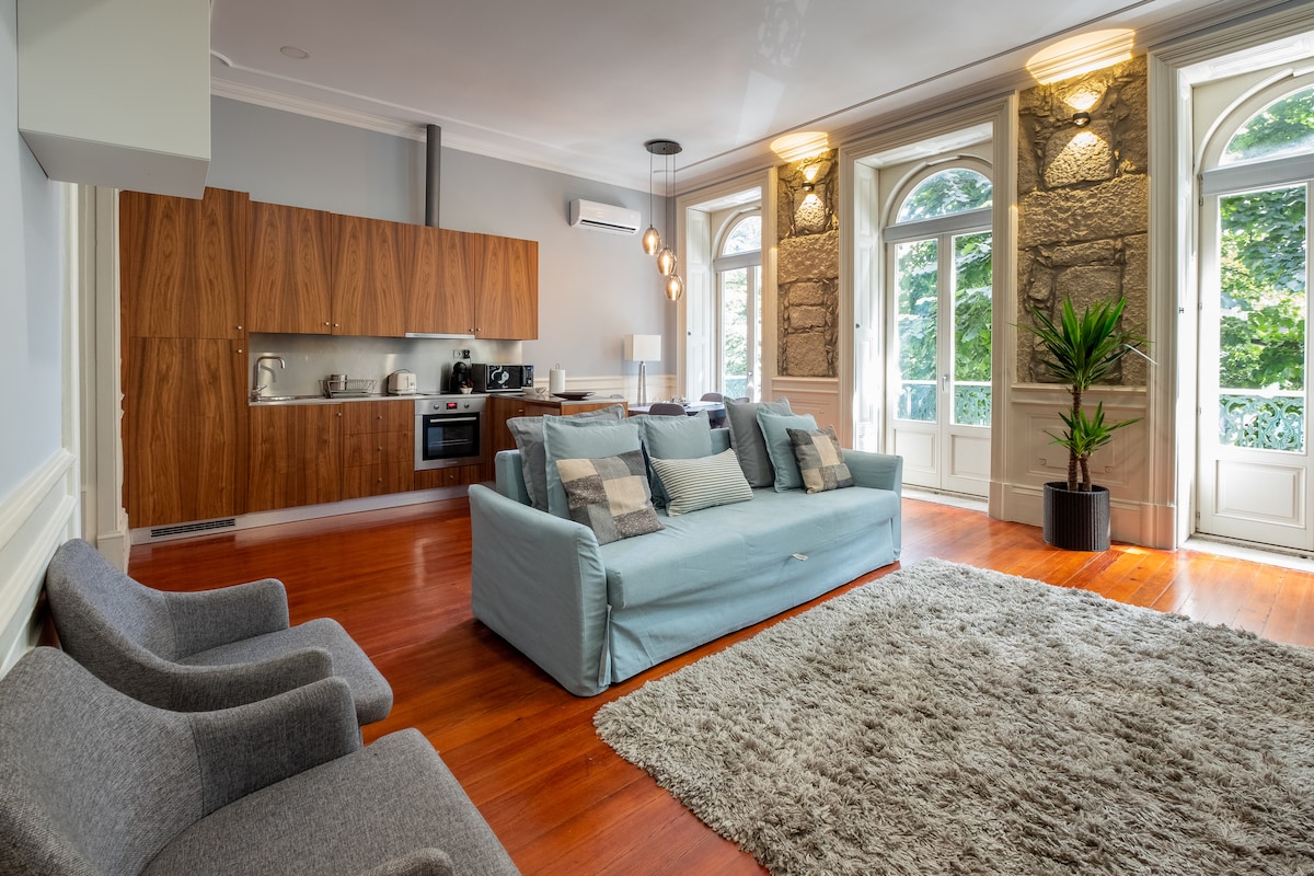 Ny lägenhet i en renoverad byggnad belägen i Portos historiska centrum - Unesco Världsarv. Beläget på en av stadens huvudgator, Rua Mouzinho da Silveira, mellan São Bento Station och Ribeira. Härifrån kan du gå och lära känna vår stad. Massor av solljus, med fem fönster och en balkong för avkoppling.