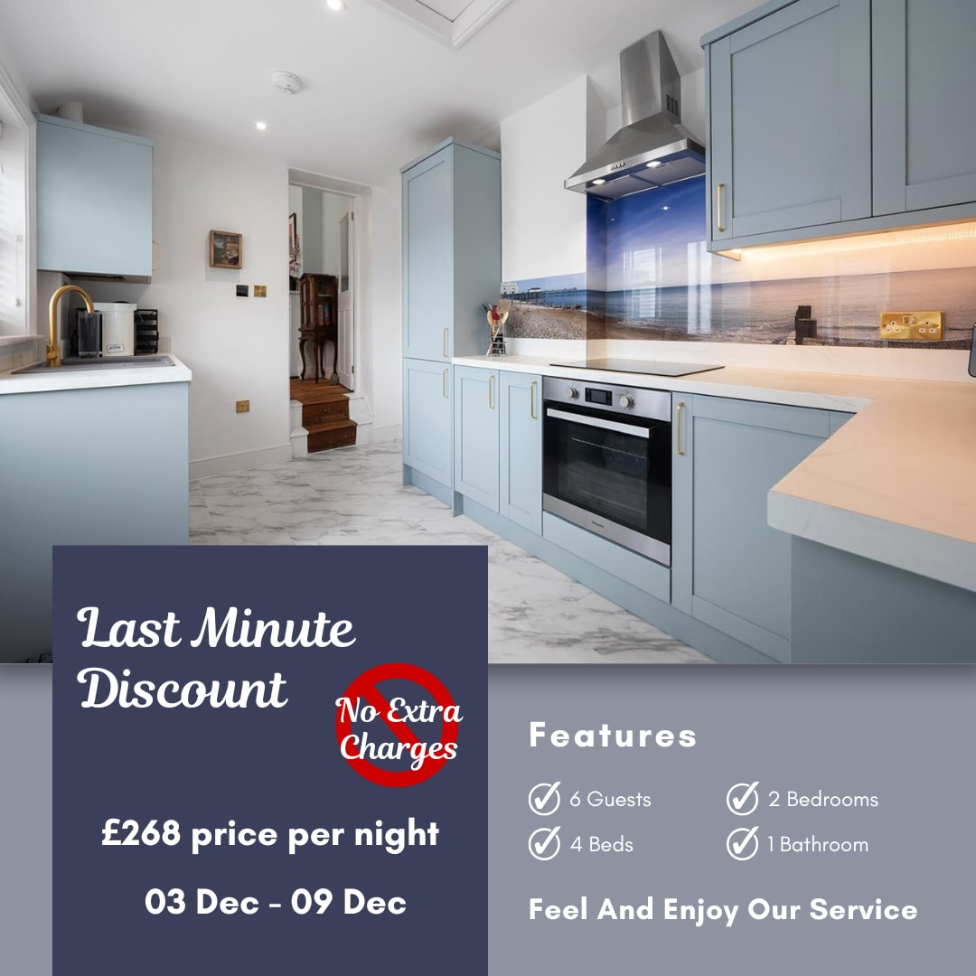 Delightful One bedroom self contained, self catering suite with private entrance, ensuite, kitchenette with a mini fridge, a microwave, a toaster, kettle, Complimentary tea and coffee on arrival. Full cutlery, plates, cups etc, smart tv, wifi, central heating. Large shower, wc, sink, cabinet with mirror, towel rail. Directly across from the beach and public carpark. Lee on the Solent has shops, cafes, Indian, Chinese, and a Turkish restaurant, which is a 15-minute walk on the beach path.