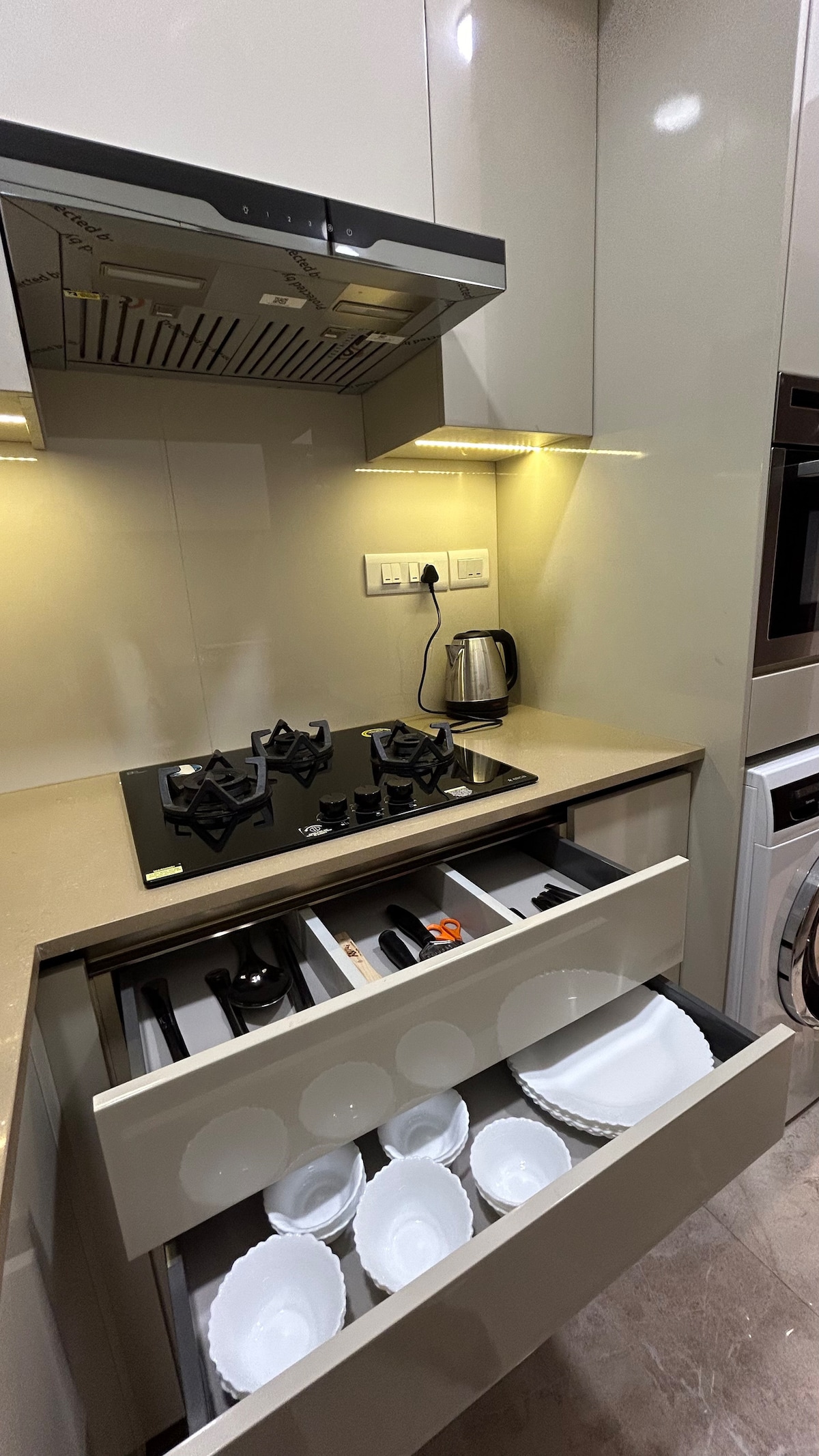 Upplev lyxigt boende när det är som bäst i vår lyxlägenhet med projektor. En av höjdpunkterna i vårt utrymme är den toppmoderna projektorskärmen, som erbjuder en uppslukande tittarupplevelse som ingen annan. Oavsett om du kollar på dina favoritfilmer eller är värd för en filmkväll med vänner, kommer den stora skärmen att transportera dig till en annan värld. Kliv ut på vår balkong och var beredd på att bli fascinerad av den natursköna utsikten som sträcker sig så långt ögat kan nå.