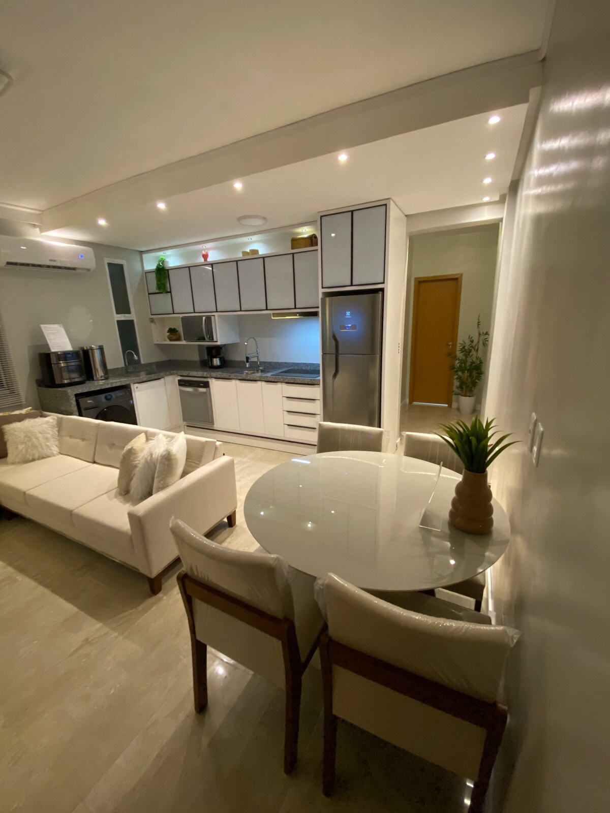 Projetamos cada detalhe para o seu bem-estar: Cozinha Completa: Geladeira Micro-ondas Todos os utensílios, talheres e panelas necessários para preparar suas refeições. Filtro de Água (Praticidade e saúde garantidas!) Conforto Garantido: Cama confortável e de alta qualidade. Toalhas e roupas de cama limpas e macias. TV para seus momentos de descanso. Ar-condicionado. Bem localizado, ideal para executivos, participantes da COP30 e viajantes.