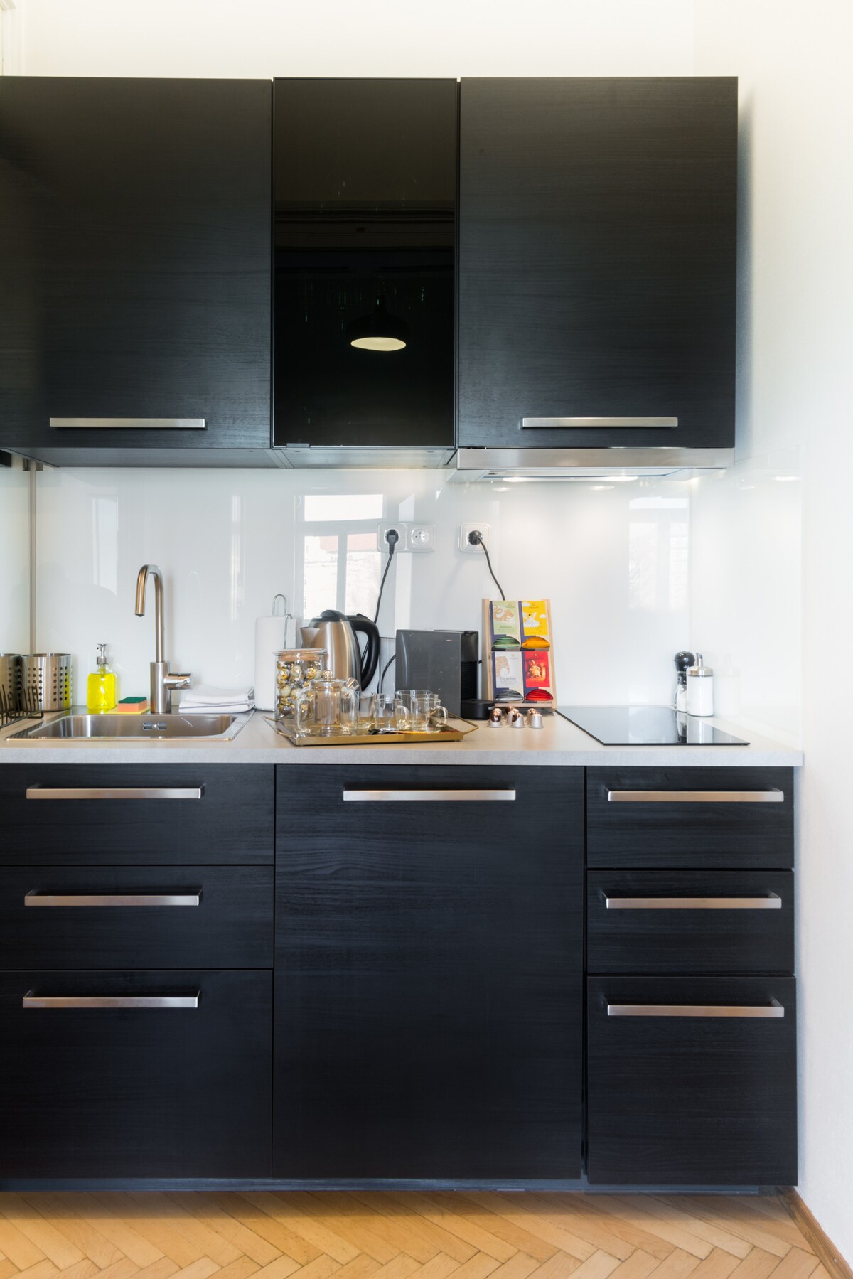 Njut av att bo i mitt vackra Jugent Stil hem byggt på 1890-talet men nyligen renoverat med alla moderna bekvämligheter man kan önska sig inklusive inbyggd luftkonditionering i alla rum. Vackert inredd tvårumslägenhet med historiska höga tak inredda i utsmyckade stuckatur lister, mitten av århundradet och moderna möbler i hela, badrum med stort badkar och separat toalett. Det perfekta stället att känna sig som hemma i Prag antingen för en helgresa, affärsresa eller längre vistelser.