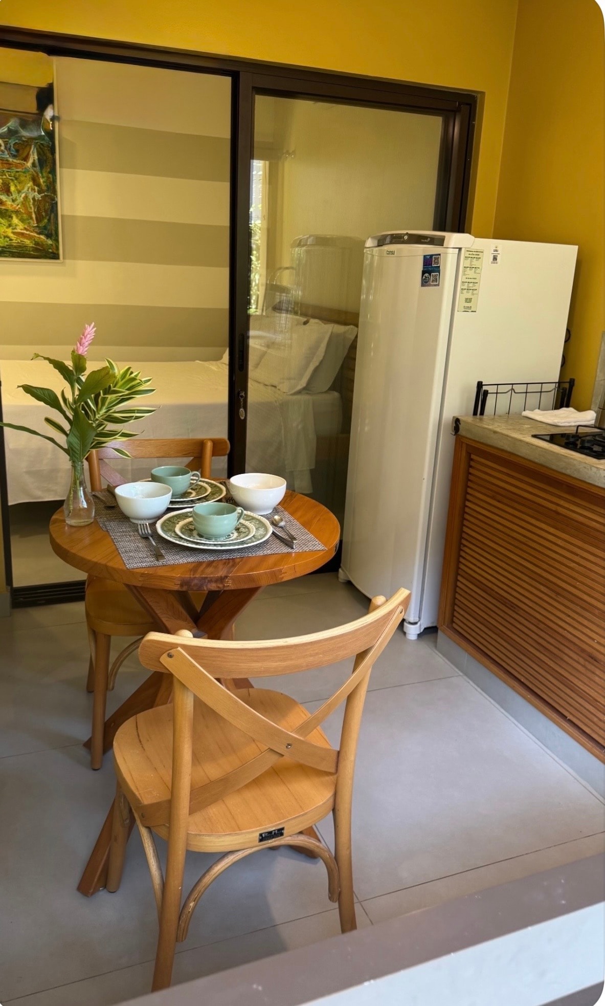 På Casa Natu Ilhabela kommer du att uppleva total interaktion med naturen även inifrån studiorna, eftersom miljön är omgiven av glas. Studiorna är helt individualiserade, vilket ger en mysig och modern atmosfär. Bubbelpoolen på sovrumsbalkongen ger skillnaden att kunna koppla av med en otrolig utsikt.