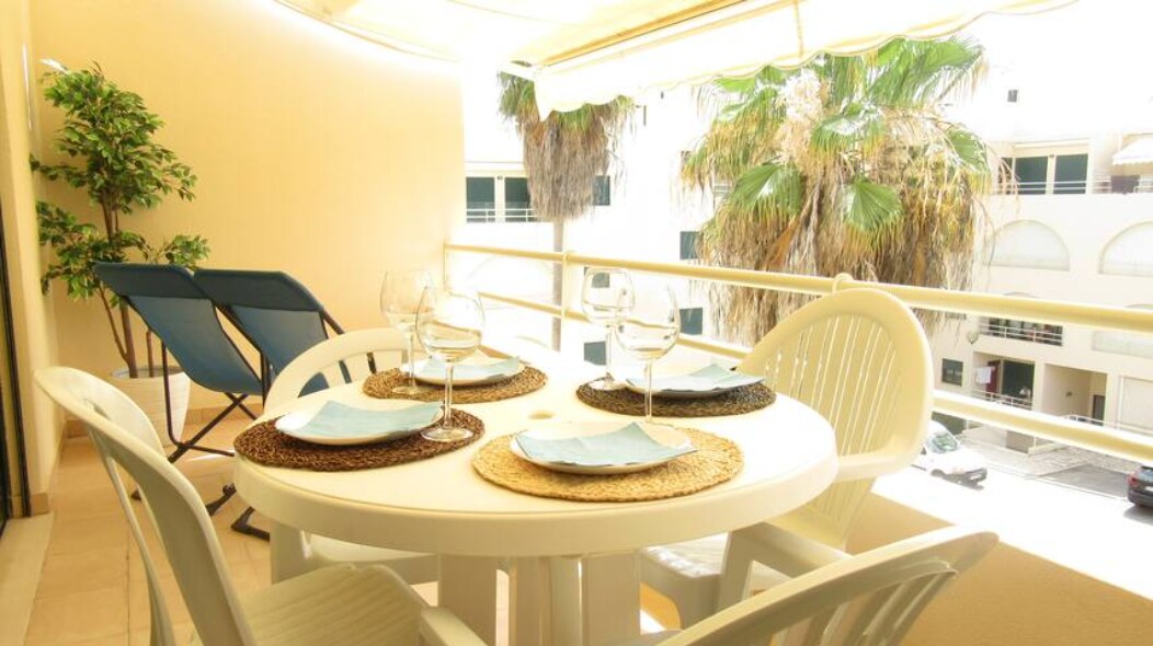 En utmärkt lägenhet med en privilegierad utsikt över stranden och havet. En ny modern konstruktion med kvalitet. En stor pool och terrass med utsikt över havet. Lägenheten har ett sovrum med gott om förvaring, luftkonditionering i sovrum och vardagsrum. Badrummet är utrustat med badkar och dusch, toalett, bidé och handfat. Finns tillgängliga sängkläder och badlakan. Ett fullt utrustat kök med tvättmaskin, diskmaskin, mikrovågsugn, ugn, spishäll och utrustning för 6 personer. Vardagsrummet är stort och har 2 soffor för när en används som säng vilket möjliggör komfort för dem som föredrar att se på tv. Balkongen är stor och reserverad som gör att den kan användas som en matsal och vardagsrum. Lägenhetskomplexet ligger bara 100 meter från stranden. Tillgängligt till fots finns en mängd restauranger, kaféer, barer, stormarknader och transporter. Det har garage (parkering) ingår.