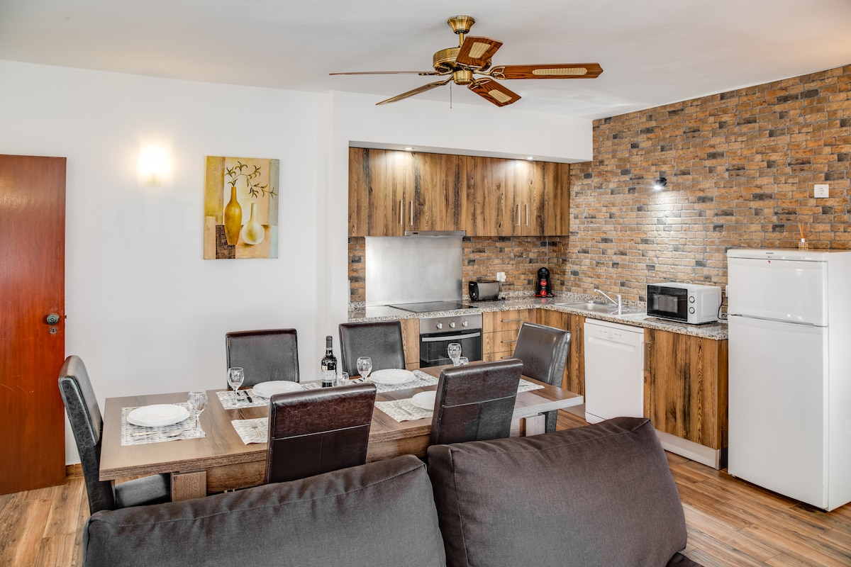 Ovanför Oura Beach och fantastisk pool med rutschkanor!! Lägenheten är mycket stor med köket öppet till vardagsrummet, två sovrum och två badrum. Balkongen går längs hela lägenhetens längd och utsikten över havet är unik. Området är lugnt men har restauranger och närliggande kul utan att behöva bil(50 m) Lägenheten, poolen och strandanslutningen är enkel och snabb, notera att priset är ganska lågt för dem som övas på Beach Club. Handdukar och daglig städning. Perfekt för hela familjen!
