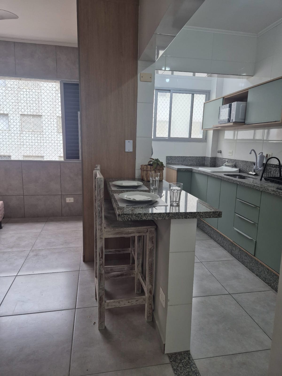 Lägenhetsinformation: - Håller upp till 5 gäster. - AC och balkong i sovrummen. - Fullt utrustat kök. - En parkeringsplats i byggnaden. - Elektronisk lås. - Alla fönster är skärmade. - Simbassäng och spelrum i ägarlägenheten. - Vi tillhandahåller sängkläder och bad. - Husdjur accepteras. - 4k TV och 220 Mbps Wi-Fi. - 100 meter från Vila Tupi strand. - Ett kvarter från en marknad, två kvarter från ett bageri och flera restauranger några kvarter bort.