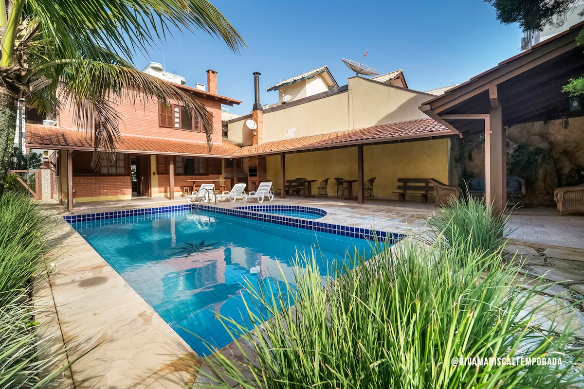 Koppla av med hela familjen i detta lugna boende i Residential Morada do Ganso,huset ligger mellan stränderna Lagoinha och Sepultura i det ädla området Bombinhas. Nyrenoverad och möblerad, 5 sovrum, som är 3 dubbelsviter och 1 queen-svit, alla möblerade, fullt utrustat kök i första raden, vita sängkläder, jacuzzi med otrolig havsutsikt,tvättstuga, Smart TV, wi-fi, källare, duplex kylskåp,plats för 2 bilar. I lägenheten finns en gemensam pool, efter stranddusch och trädgård.