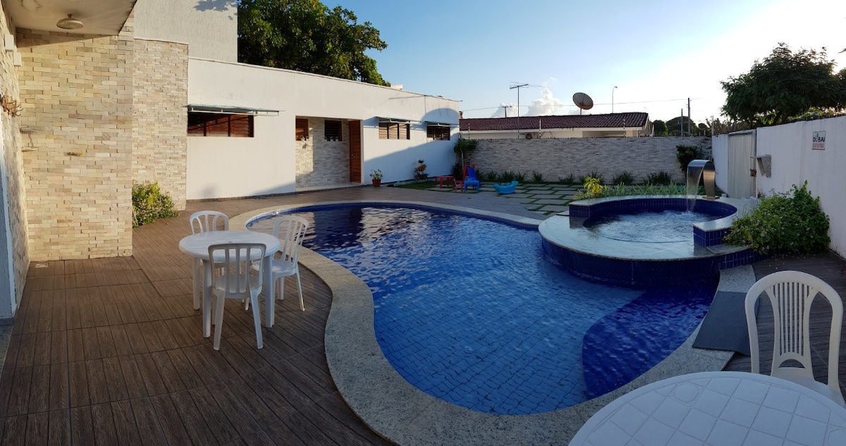 Mysigt hus, pool med bubbelpool, fullt gourmetområde, bekväma sängar, garage för tre bilar, stora balkonger på bottenvåningen och bottenvåningen, 200 meter till stranden, restauranger, mini köpcentrum, stormarknad, apotek och bagerier i närheten. Rum med luftkonditionering och TV, master svit med minibar , alla stora dubbelsängar.
