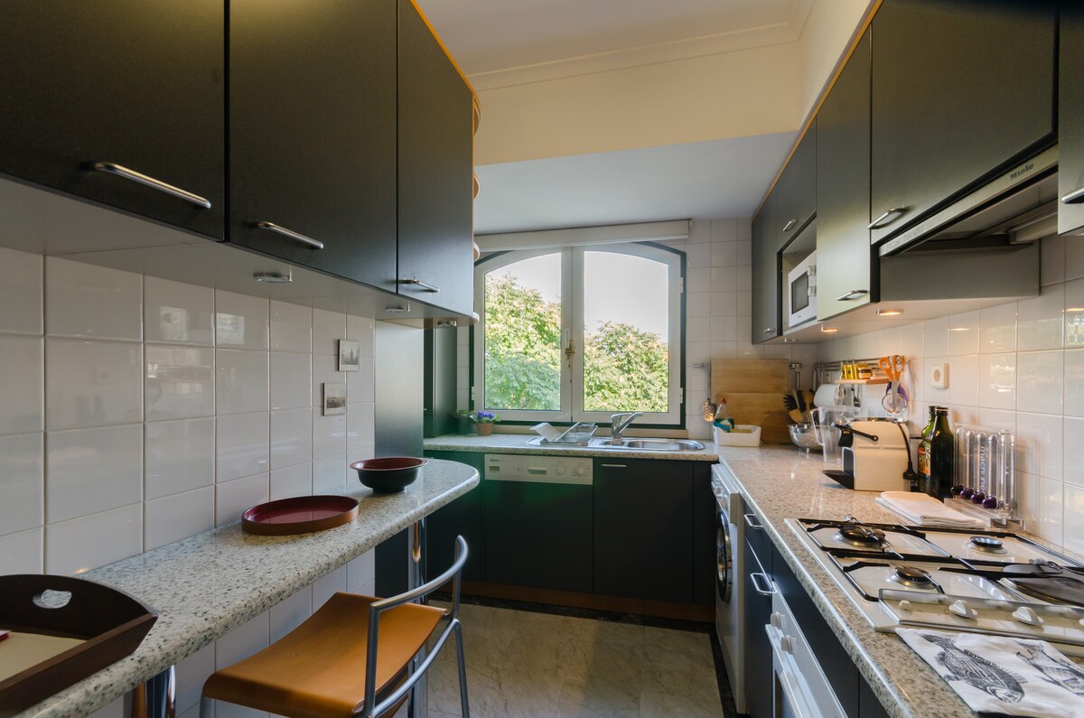 - SPEKTAKULÄR HAVSUTSIKT - TERRAS -6 MINUTERS PROMENAD TILL STRANDEN - SUPER SNABBT WIFI - ARBETA HEMIFRÅN - TVÄTTMÖJLIGHETER Denna rymliga och eleganta lägenhet med 1 sovrum ligger på översta våningen med utsikt över havet. De historiska byggnaderna i Monte Estoril, linje utsikten med sin arkitektoniska prakt härstammar från början av 1900-talet portugisiska aristokratin. En kort promenad leder till stranden och tar dig till Estoril eller Cascais i båda riktningarna. Noggrant utformad så att våra gäster kan njuta av lyx och plats