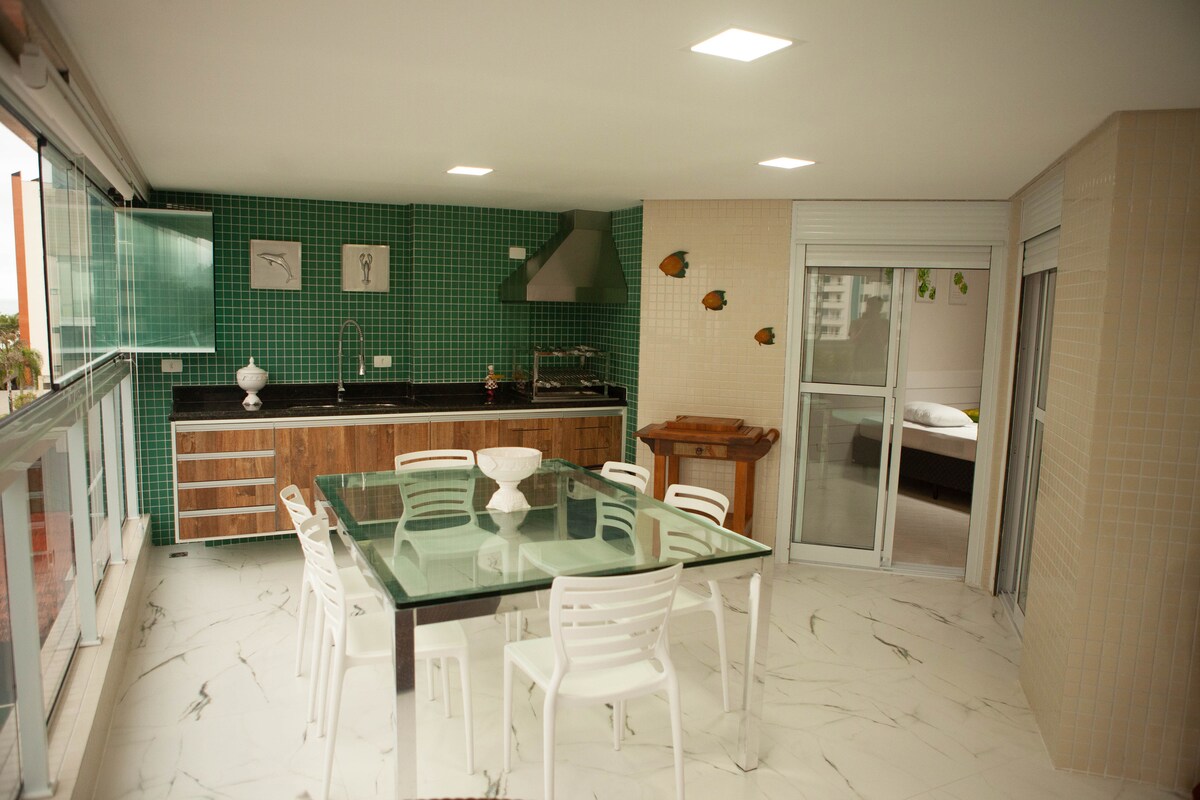 Att vakna och se havet är uppfriskande, tornet ligger nära lekrummet, minibanan, ungdomsspelsalen, gymmet och den exklusiva utgången till stranden 48 meter bort. Det bästa stället på Riviera de São Lourenço, perfekt för barn, äldre och digitala nomader. För resenärer från en annan stat eller föräldrar ligger det 96 km från Guarulhos flygplats och 118 km från Congonhas flygplats ligger det i den centrala regionen (modul 4/5) 150 meter från köpcentret, apoteket, minimarknaden.
