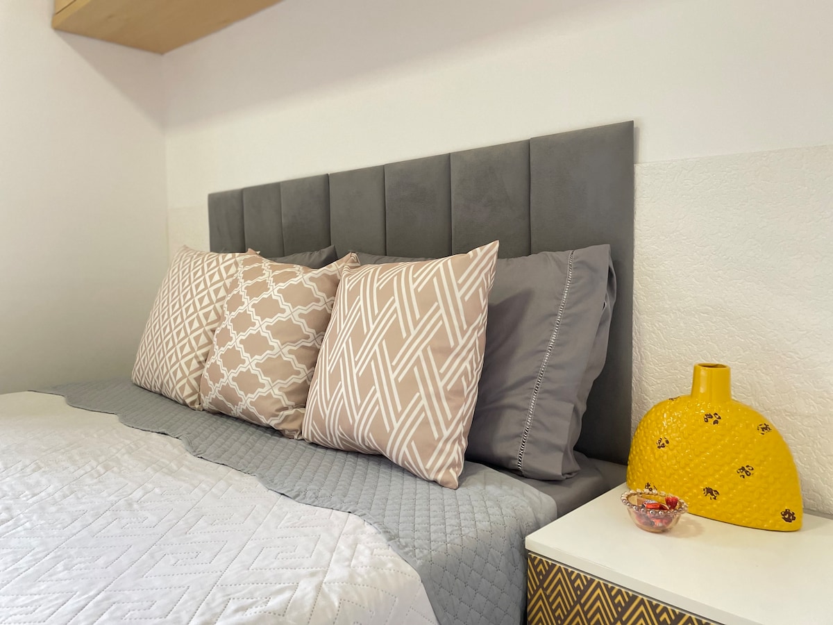 Njut av en lugn och elegant tillflyktsort 10 minuters promenad från den fantastiska Itaparica-stranden i Vila Velha. Vår lägenhet erbjuder allt du behöver för en perfekt vistelse, oavsett om du är på affärsresa eller semester: dubbelsäng, luftkonditionering, snabbt wifi, bäddsoffa, smart-TV, hårtork och ett fullt utrustat kök med redskap. Upplev minnesvärda stunder i detta mysiga utrymme. Boka nu för en minnesvärd vistelse! - Självständig ingång - Det finns inget garage.