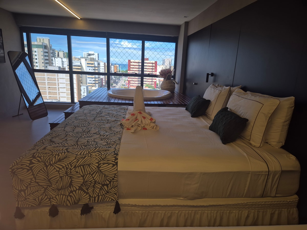 SKY CONCEPT-BYGGNADEN. Denna unika plats har sin egen stil. 1-rumslägenhet för upp till 6 gäster med det bästa läget i Jatiúca. Byggnad med modernt system, komplett fritidsanläggning för att bättre tillgodose våra gäster. Superutrustad och komplett lägenhet med allt våra besökare behöver för en perfekt vistelse. Nyöppnad, ät din frukost med utsikt över havet och njut av en inredd och utrustad lägenhet. Vi har sängkläder, handdukar, hårtork och strykjärn och maskin.