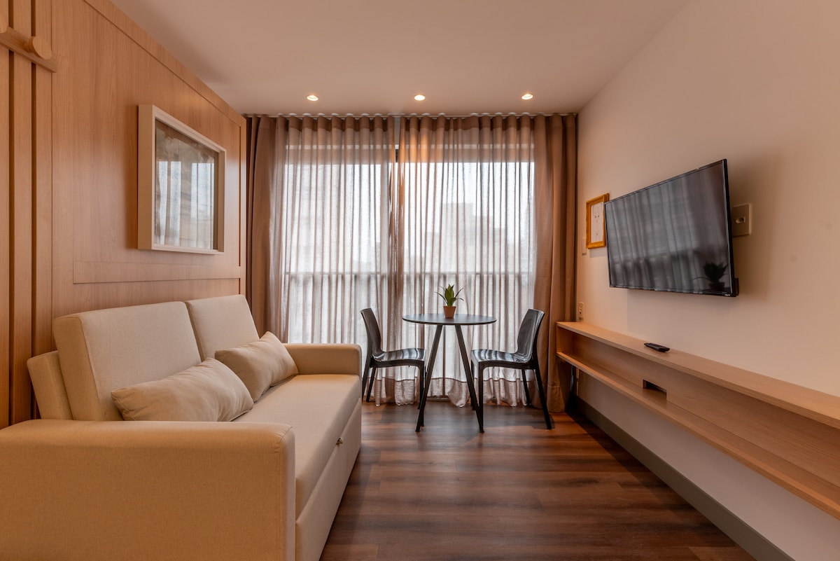 46 m² Loft på byggnadens högsta bostadsvåning, 23:e våningen. Några steg från Praia de Belas Mall och Guaíba Waterfront! Fantastisk utsikt över Porto Alegre Trend Orla / Trend City Residencial. 💪 Fitnessrummet 🏊♂️ Uppvärmd pool 🚗 Garage täckt 📺 2 smarta TV-apparater med Netflix ❄️ Luftkonditionering 📶 Snabbt wifi Rymlig 🧳 garderob 🛏️ Bekväm säng 🪟 Solglasögon 🚿 Dusch i hotellstil 💇♀️ Hårtork 🍳 Utrustat kök 🍷 Vinöppnare 🧺 Tvätt- och tørkemaskin 👕 Strykjärn