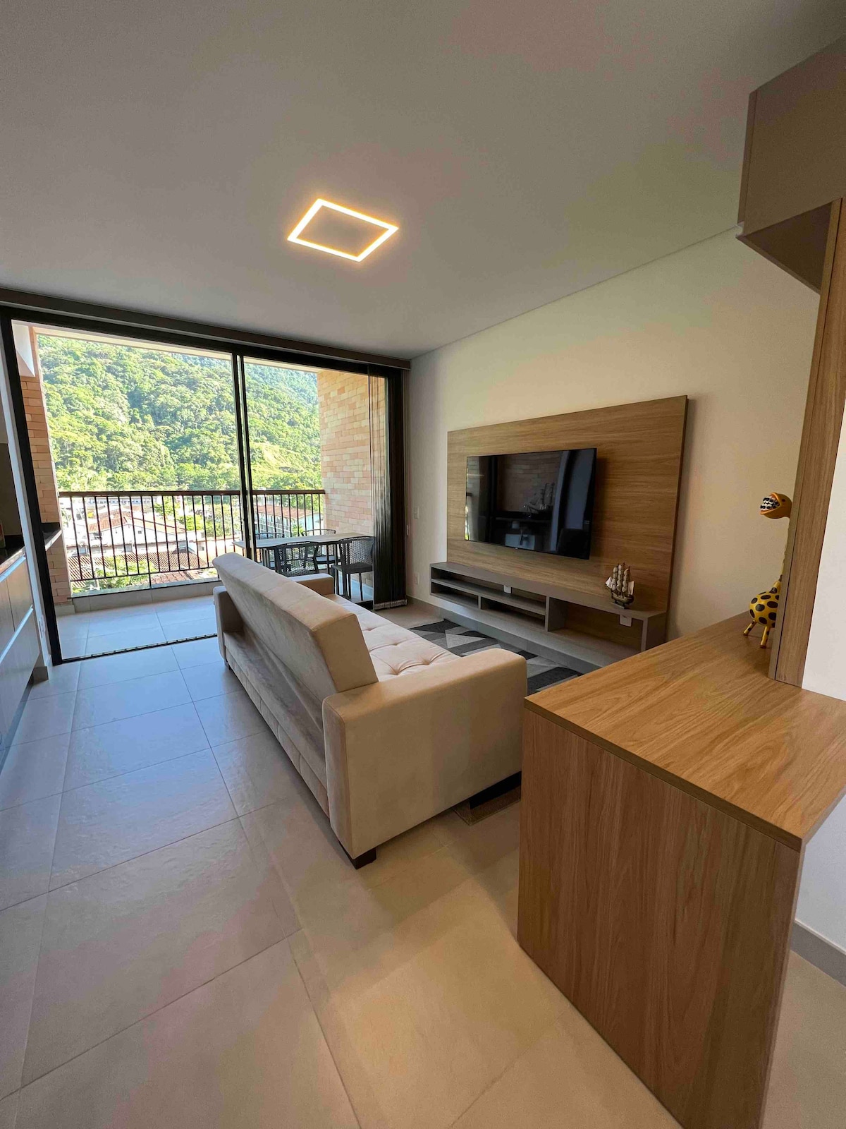 Vacker plats i nytt bostadsområde. Studio med möbler, vitvaror, komplett och kvalitativt hushållsutrustning, gourmetbalkong. Komplett fritidsområde på taket (pool med oändlig kant, torr och våt bastu, gym och lekrum. Utsikten från fritidsområdet är spektakulär! Du kan komma åt stranden Flamengo eller Sete Fontes via en stig, om du föredrar olika skonnare eller båtturer, allt detta tillgängligt mindre än 200 meter från lägenheten. Missa inte denna möjlighet.