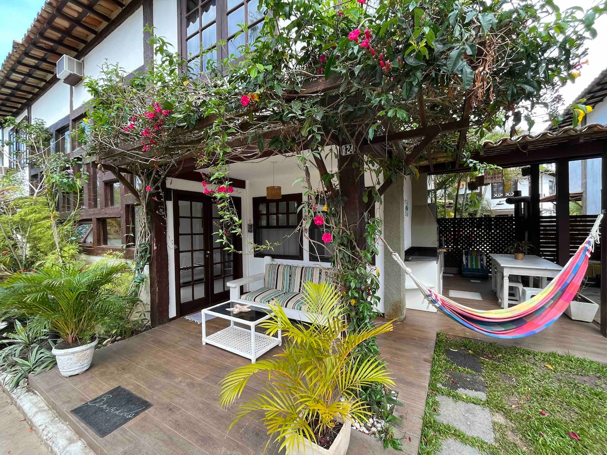 Underbart hus i en "Fot i sanden" -lägenhet. Condominium Búzios Resort. Huset har luftkonditionering och en gasdusch i 3: e! Här finns TV och wifi . Komplett hus i porslin och hushållsredskap. Utrymme för broderskap med grillplats. I bostadsutrymmet (gemensamt område), som har tillgång till stranden (snabbbåt / jetski-ramp), finns också idrottsplaner ( fotboll, volleyboll och tennis ), torr och ångbastu, spelrum, pool (vuxen och barn), bar/restaurang och parkering.
