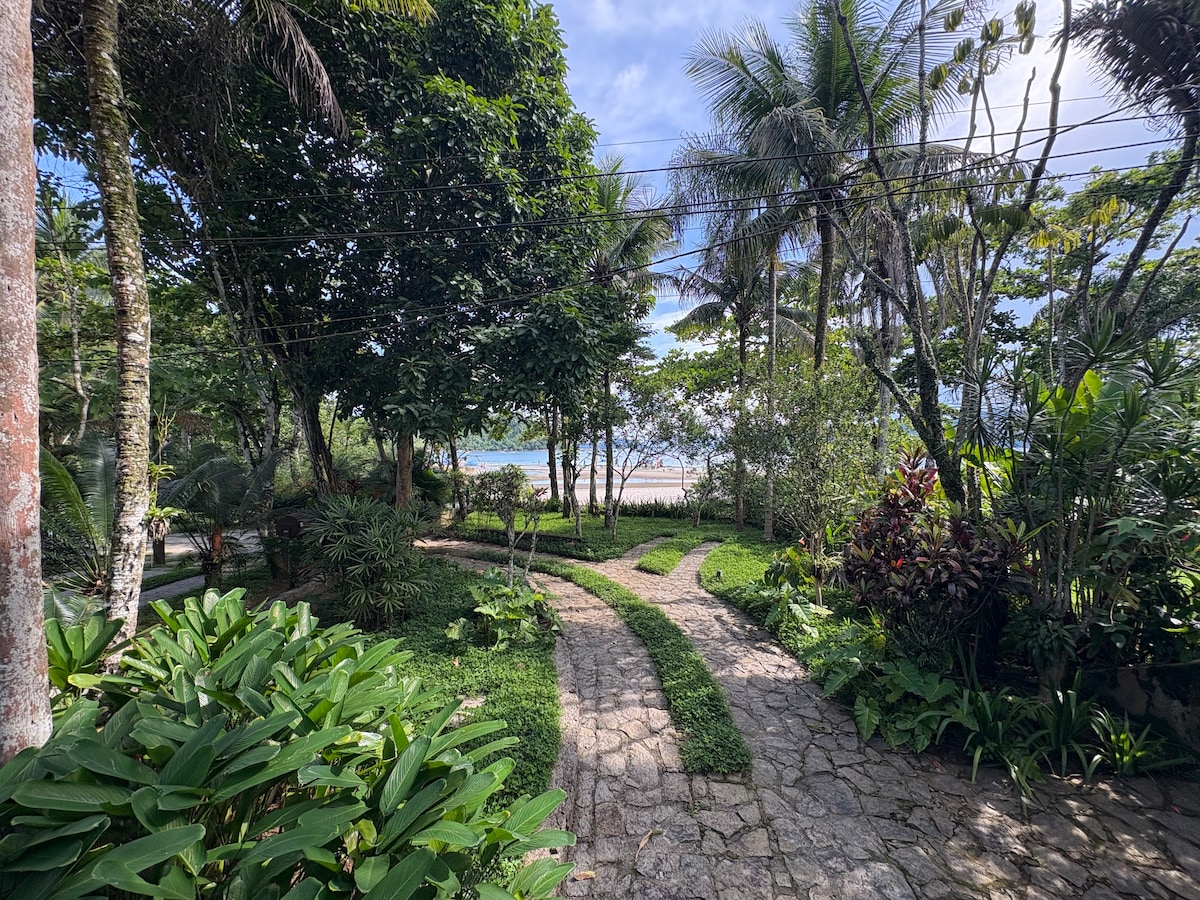 Detta hus ligger på Praia da Fortaleza, Ubatuba, och är den perfekta tillflyktsorten för den som söker natur och komfort. Med en privat grind som leder till sanden kan du njuta av stranden bara några steg bort. Havet är lugnt och i hörnet finns en naturlig pool för att bada med fiskar. Huset är mysigt och tillgängligt, med en svit på bottenvåningen integrerad i trädgården, perfekt för äldre. Alla rum är luftkonditionerade. Stranden har kiosker, perfekt för måltider och drycker under dagen.