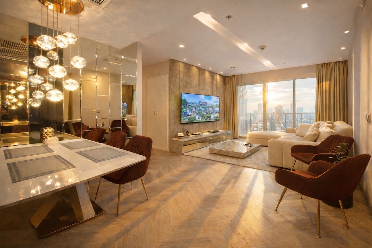 Tvårumssvit B5D i centrum/Nära tunnelbanan/Stadsutsikt från höga höjder/Siam Business District/Gratis transfer/Swimmingpool & gym/Bar på taket/Fyr nätter med transfer till flygplatsen