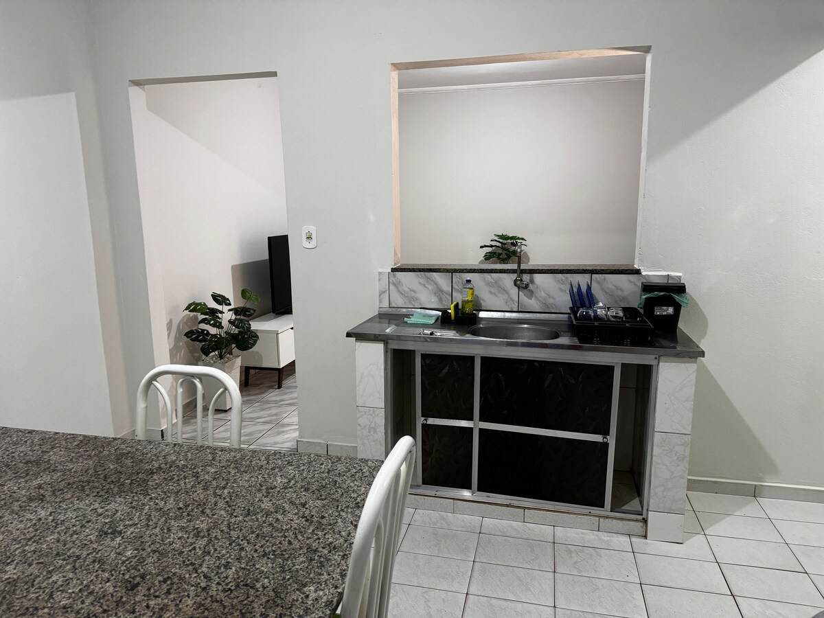 Detta unika ställe har sin egen stil. Det är en Kitnet på cirka 30 m² som bekvämt rymmer upp till 5 personer. Utrustad med mörkläggningsgardiner, 50-tums-TV med Netflix, luftkonditionering, fläkt, dubbelsäng, enkelsäng, en separat madrass, bord, kylskåp, soffa, mikrovågsugn, mixer, spis, kaffebryggare och hushållsartiklar. Den har en individuell tvättstuga och ett garage för små och medelstora bilar. Tyvärr finns det inte plats för stora bilar.