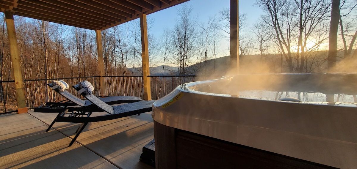 Din privata fjällretreat har en ångande bubbelpool året runt – perfekt för romantiska utflykter eller fokuserade arbetsresor. Inuti kan du njuta av naturskön utsikt, ett välutrustat kök, snabbt wifi och en stor 65-tums TV. Äventyr ligger i närheten: 15 minuter till lokala städer, 35 minuter till Morgantown, 40 minuter till Wisp Ski Resort. Din fyra säsongers bas för vandring, kajakpaddling, skidåkning och ATV-spår. Observera: För vintervistelser rekommenderas AWD/4WD.