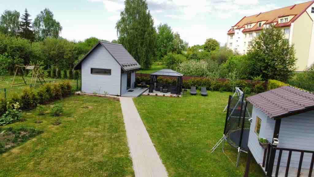 Mysigt, lugnt och modernt semesterhus med bastu och badtunna med jacuzzi. Läge bara 4 km från centrum mitt i skogen. Vi erbjuder bekväm och tyst vistelse utanför staden. Semesterhuset är utrustat med alla nödvändiga saker att bo - uppvärmning, AC, välutrustat kök, toalett, dusch, smart TV, gratis parkering. En dubbelsäng ligger på loftet, och fällbar soffa ligger i vardagsrummet. Badtunna och bastu är för extra kostnad - badkar 60EUR, bastu 30 EUR. Husdjur får gärna medtagas!