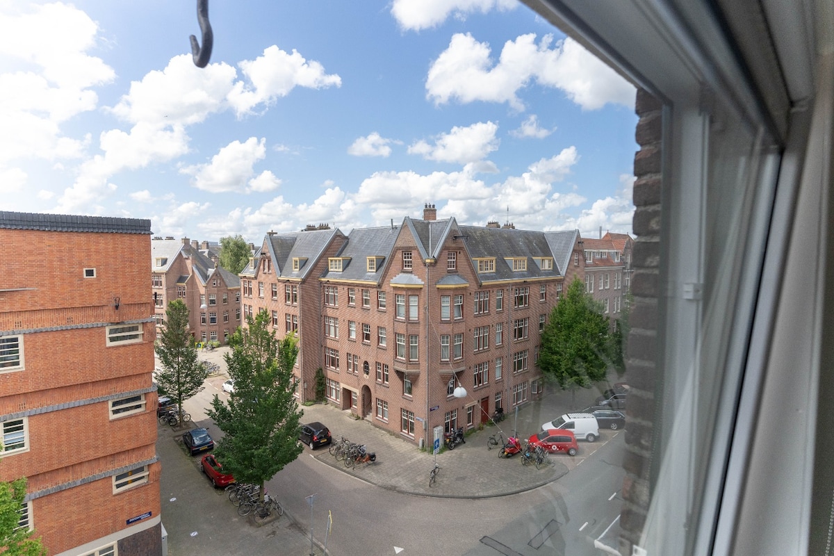 Jag förvandlade detta "1800-talshöloft" på andra våningen till ett bekvämt hem (Min 16-åriga son och jag bor här). Det är mycket ljust och rymligt. Grannskapet är fyllt med delikatesser, barer och restauranger. Rijks, Stedelijk, van Gogh-museet och kanalerna ligger runt hörnet. Cykeluthyrning, kanalkryssningar, Paradiso och Concertgebouw också. Det är mitt hem och min studio (jag är designer), när jag reser AirBnB det.