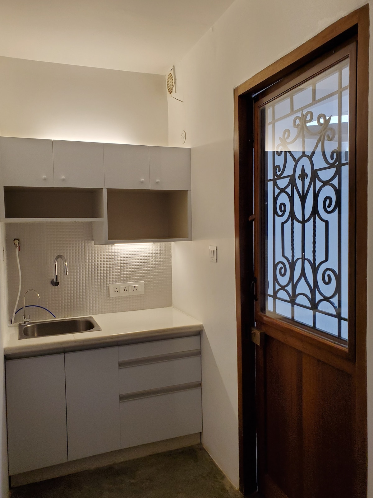 Denna lägenhet är helt privat, ingen delning av något område och det är parvänligt. Detta boende är för 2 till 4 gäster. Vi behöver ID-handlingar för alla gäster. Stället har 1 sovrum, en hall, kök och ett badrum med lite utomhusutrymme. Boendet ligger på bottenvåningen och lägenheten har dubbelsäng, luftkonditionering, Android-TV med appar, ugn, geyser, strykjärn, bäddsoffa med luftkonditionering i hallen, matbord, RO-vattenrenare, kylskåp, gasspis, mixer kvarn, tryckkokare och andra alla andra köksredskap.