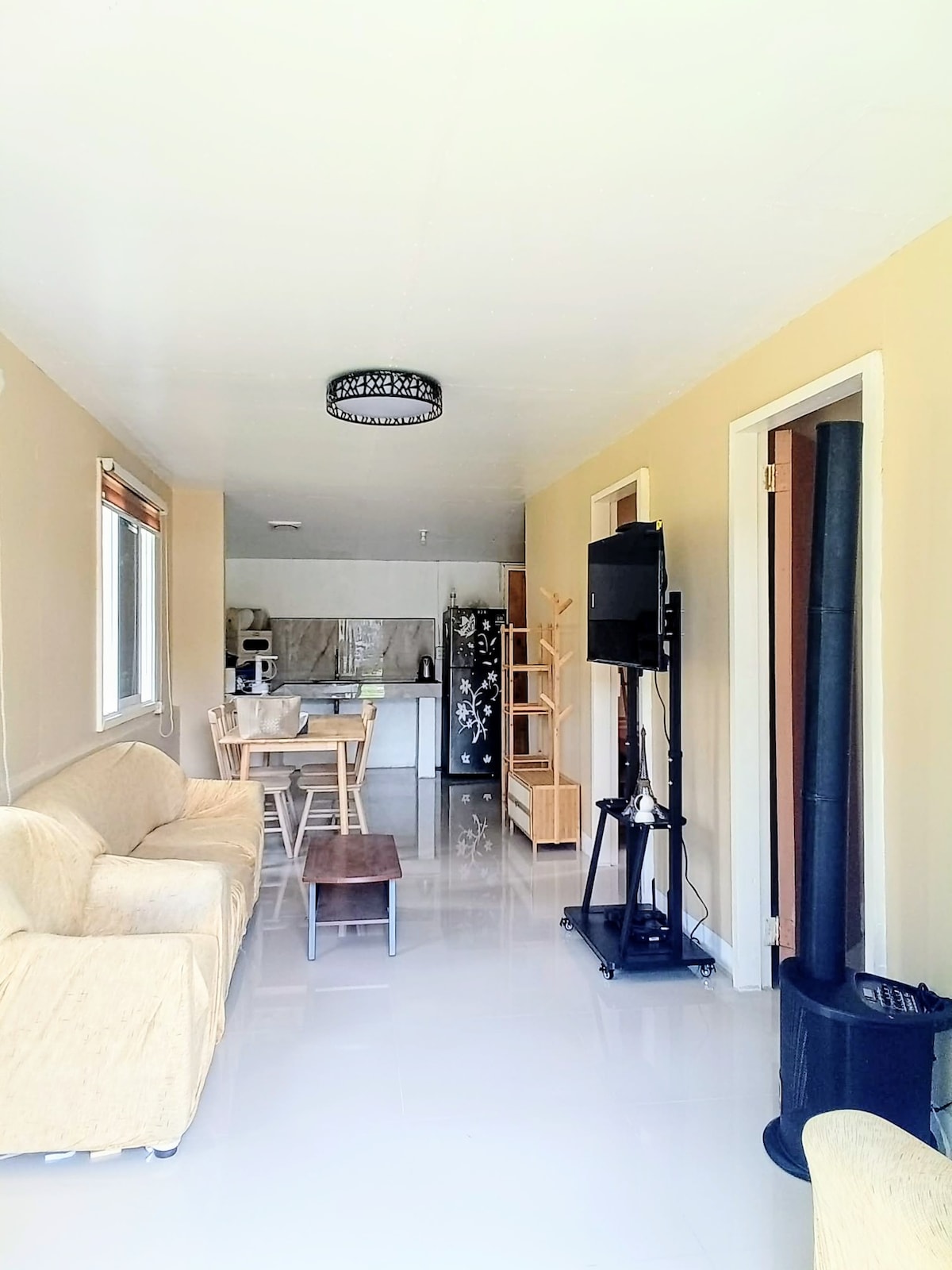 What’s Included: • Complimentary guest kits • Fresh towels for all guests • Fast & reliable WiFi (40–50 Mbps) • 55-inch Smart TV • 2 air-conditioned bedrooms • 1.5 HP inverter aircon in the living room • mini ref, rice cooker, kettle, and glass-top gas stove (with pots & utensils) • Extended kitchen/cooking area with canopy • Bathroom with shower & bidet • 4-seater dining set • Double-size bed in master’s bedroom (2 persons) • Double-size sofa bed in 2nd room (2 persons) • Free common parking