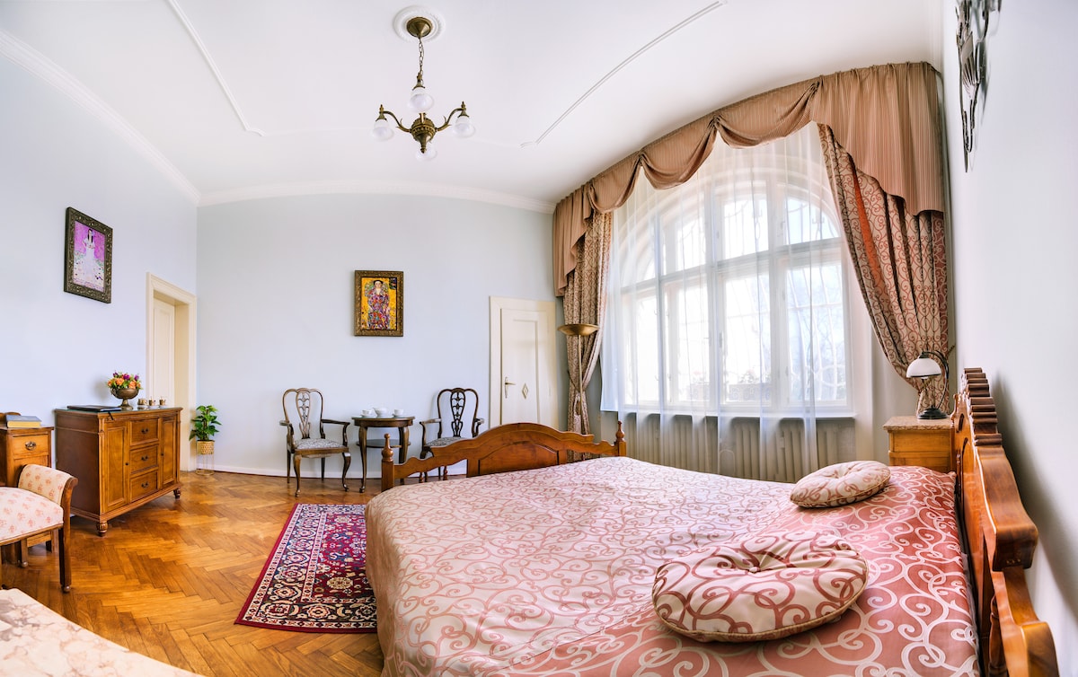 The cozy apartment with a wonderful view a few steps from the city center. It is strategically located close to major monuments, museums, theatres, university, sports venues and cafes. Two spacious bedrooms with king-size beds will offer you privacy and comfort. You can use the fully equipped kitchen and the large living room for shared moments. Enjoy a romantic weekend or exploring Olomouc with friends.