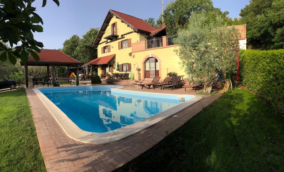 En gammal och stor bondgård nedsänkt i 5 hektar ekologisk olivlund, på kullen , med utsikt över den medeltida byn Lauro och panoramautsikt över Vesuvius. Saltpool (mt. 18x4,5, automatisk PH-kontroll, mekanisk rengöringsmedel), panoramaterrasser. Endast 40 km från Neapel (flygplats), boarding Capri, Ischia, Procida, Caserta, Salerno, Amalfikusten, Pompeji, Herculaneum, Paestum. 15 km från Avellino och Irpinia där provsmakningen av de berömda vinerna - Greco di Tufo, Fiano, Taurasi rekommenderas.