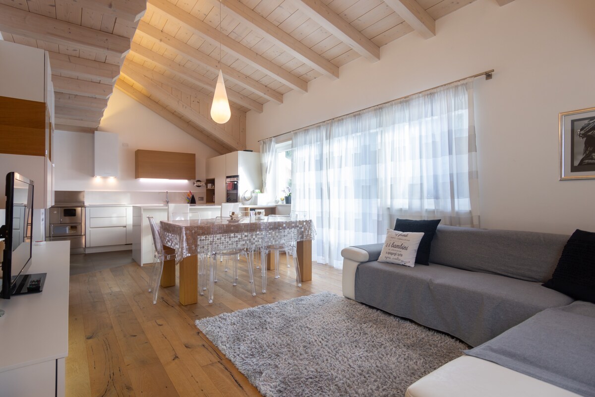 Nyrenoverad Mansard . Öppet utrymme i naturligt trä krönt av elva stora takfönster. När du sitter bekvämt på soffan kan du beundra skogarna stenarna och stjärnorna. Mansard har totalrenoverats med värdefulla material och utrustad med många smarta prylar . Lägenheten ligger i ett lugnt ,soligt och panoramiskt bostadsområde i hjärtat av Val di Fassa, nära skogen, 3 km från huvud shoppingområdet och Sellaronda skidliftar. CIN: IT022113C2RUCHO5AY