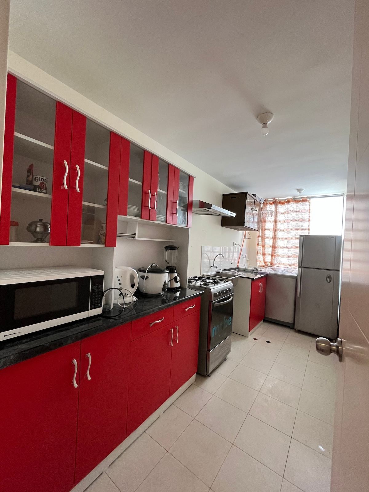 Koppla av med hela familjen på detta lugna ställe att bo på. Vi ligger några kvarter från marknaden, polisstationen och BCP-banken. Dessutom 5 minuter från strandpromenaden, Plaza Vea, stranden, nattklubbar och restauranger. Vi har en helt ny, fullt möblerad lägenhet. *Köket: kylskåp, mikrovågsugn, spis, mixer, risspis osv. *Vardagsrum: matgrupp, vardagsrumsmöbler, smart-TV, fläkt, underhållningscenter. *Badrum: varmvatten, toalettpapper, tvål, handdukar Det finns WiFi