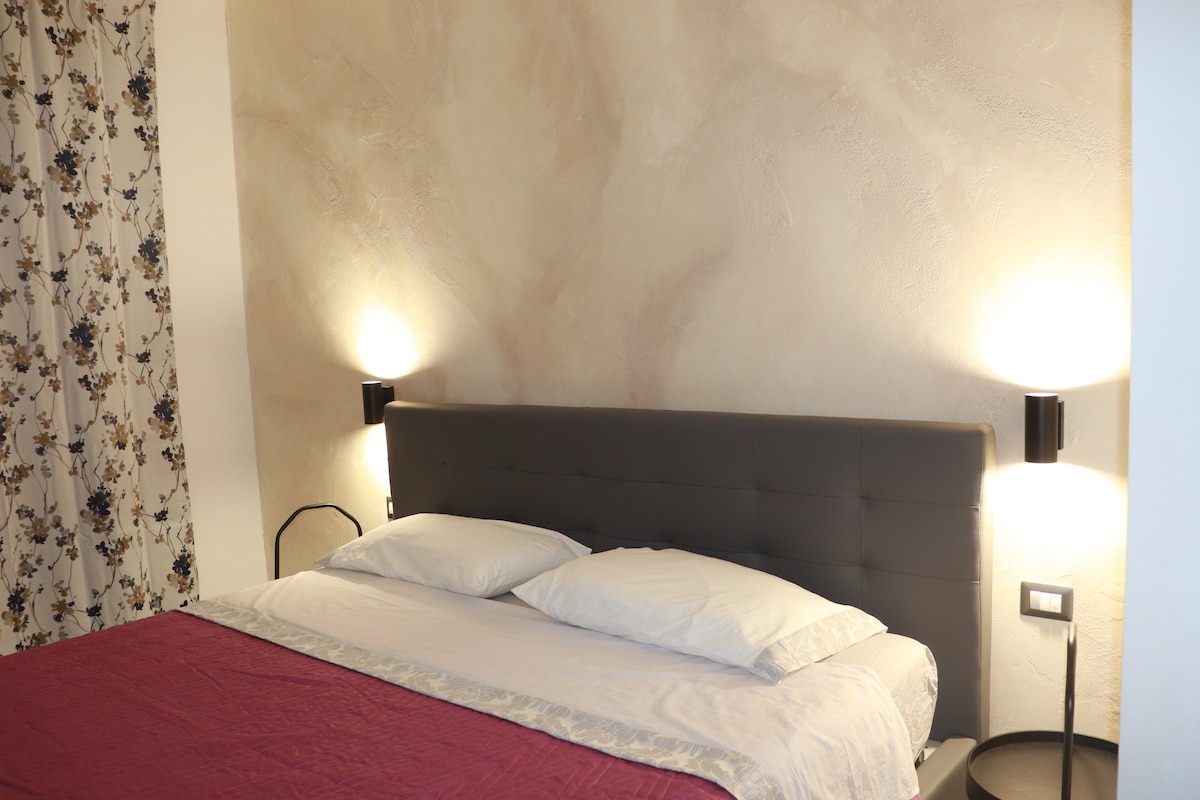 Una camera comoda e confortevole, con bagno interno e un piccolo spazio all’aperto dal quale si accede tramite una porta finestra.