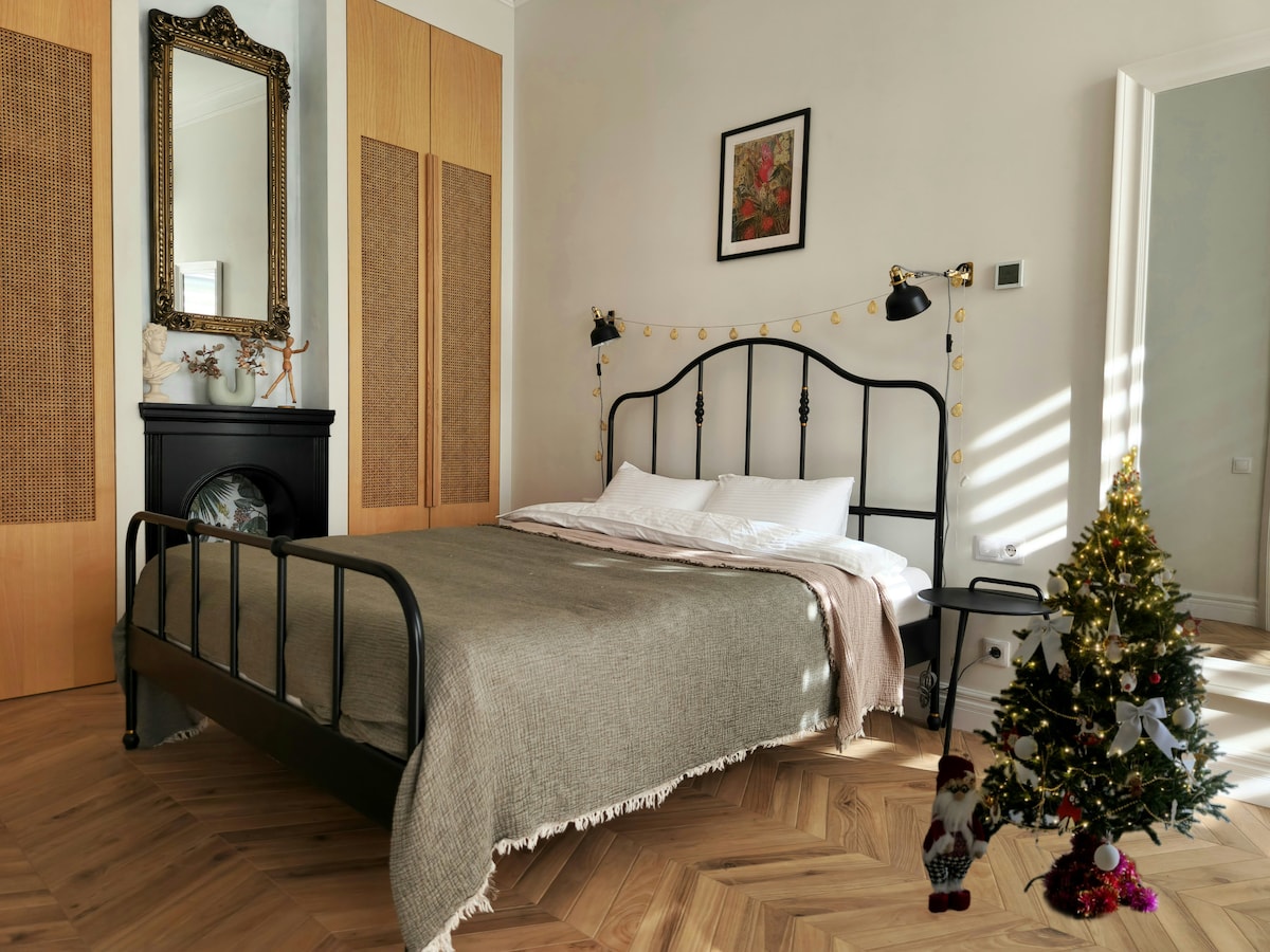 En elegant lägenhet i centrum, designad i skandinavisk stil med vintage möbler och modern konst. Den ligger 15 minuters promenad från stranden och 10 minuter från den centrala parken, omgiven av många restauranger och barer. En förrevolutionär byggnad med en mysig Odessa innergård. Lägenheten har ett separat sovrum med en dubbelsäng och en bekväm bäddsoffa i vardagsrummet. Lägenheten är fullt utrustad med allt du behöver.