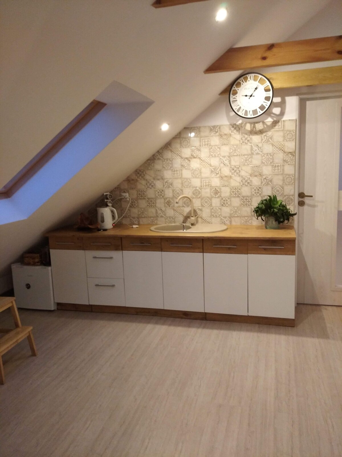 Lägenheten ligger i ett lugnt område på ul.Widok i Kajkow/Ostróda. 5 minuters promenad till sjön Sajmino. Den nya lägenheten består av ett utrustat pentry med ett vardagsrum, ett sovrum, ett badrum och en balkong. Det finns 50 meter bekvämt utrymme för gæster. Soffan i vardagsrummet fälls ut. Det är möjligt att ta med en liten hund