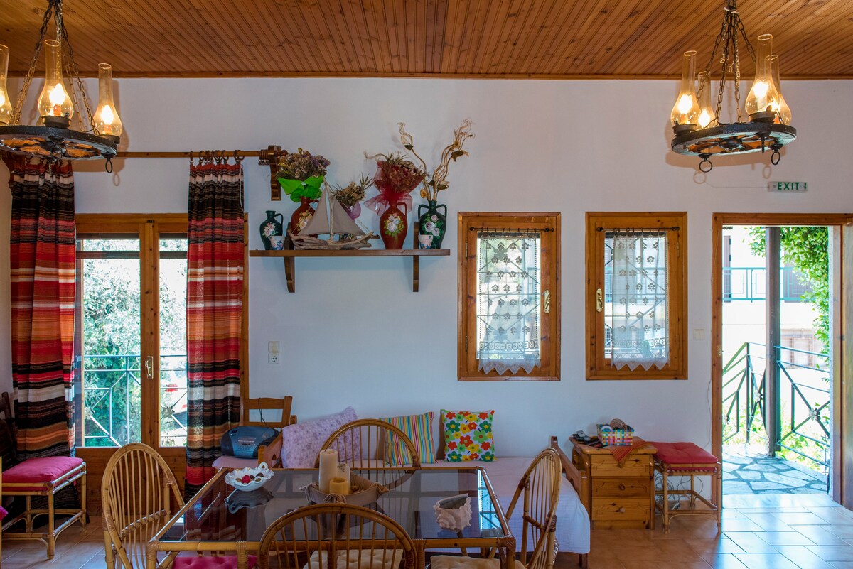 I Trikeri i södra Pelion, ett helt renoverat hus, oberoende och rymligt med utomhusutrymmen, gård och balkong med panoramautsikt över alla punkter i horisonten. Den ligger på kanalen mellan den Pagasitiska-evoiska bukten och Egeiska havet och lämnar bakom den, skogen Pelion, Kentaurernas berg. Trikeri är en vacker destination som skiljer sig från resten av Pelion. Den ligger på den sydligaste spetsen av Pelion på ett avstånd av 81 km från Volos på en höjd av 300 meter.