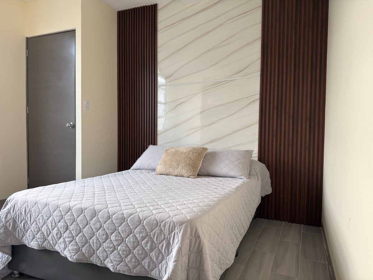 Unikt och idealiskt utrymme för dig Helt oberoende med dubbelsäng, fullt badrum, kylskåp och pentry. Det är idealiskt för 1 eller 2 personer, ett mycket ljust utrymme med wifi idealiskt för att arbeta hemifrån. Njut av kabel-TV, el och varmt vatten hela dagen lång med en fantastisk utsikt från översta våningen. Utmärkt läge, med transporttjänster, en gata från tunnelbanan. Det ligger 20 min från CAPU terminal, Oxxo 5 min promenad, apotek och marknaden 3 gator