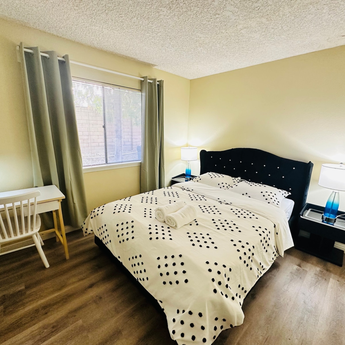 Denna moderna, centralt belägna lägenhet är det perfekta stället att bo, arbeta och leka: ★ Nyrenoverad lägenhet med 2 sovrum + 2 spa-liknande badrum w/walk-in regnduschar ★ Enkel tillgång till centrala LA och andra stora attraktioner (Disneyland, Knotts), mataffärer, restauranger, shopping, parker ★ Fullt utrustat kök med nya apparater, kaffe/tebar ★ Mysigt vardagsrum med 65" smart-TV, uteplats, höghastighets Wi-Fi ★ Inhägnat grannskap med pool, klubbhus, tennisbanor, gratis reserverad parkering