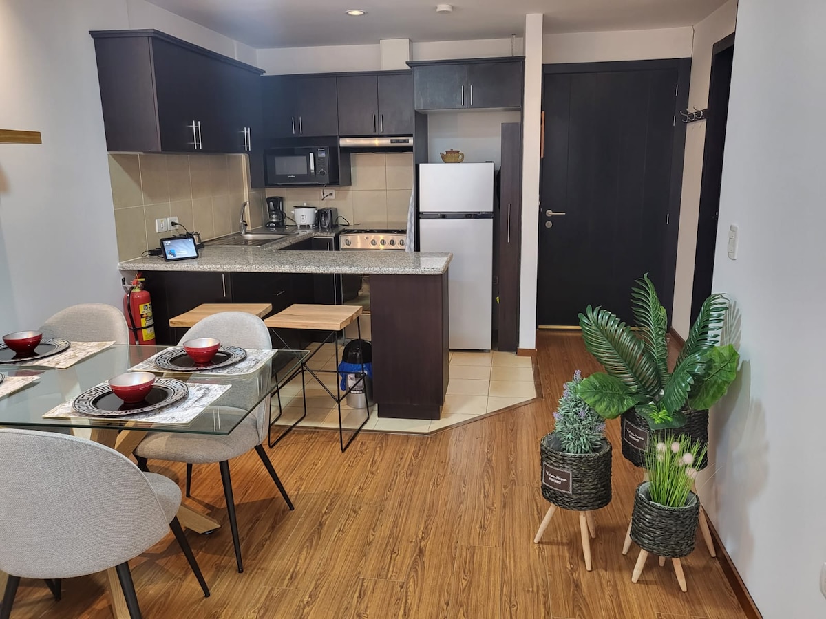Njut av den vackraste staden i Ecuador, och vila i en elegant, modern, mysig, fridfull och central svit i Cuenca, nära parker, banker, kliniker, restauranger, biograf, stadsstadion, 10 minuters promenader till det vackraste historiska centrumet som korsar floden Tomebamba. Du behöver inte ha en bil, du kan gå till alla viktiga turistpunkter. Sviten har allt du behöver för att tillbringa en fantastisk tid med dina älskade. Sök inte mer, vårt jobb är att få dig att ha en bra vistelse.