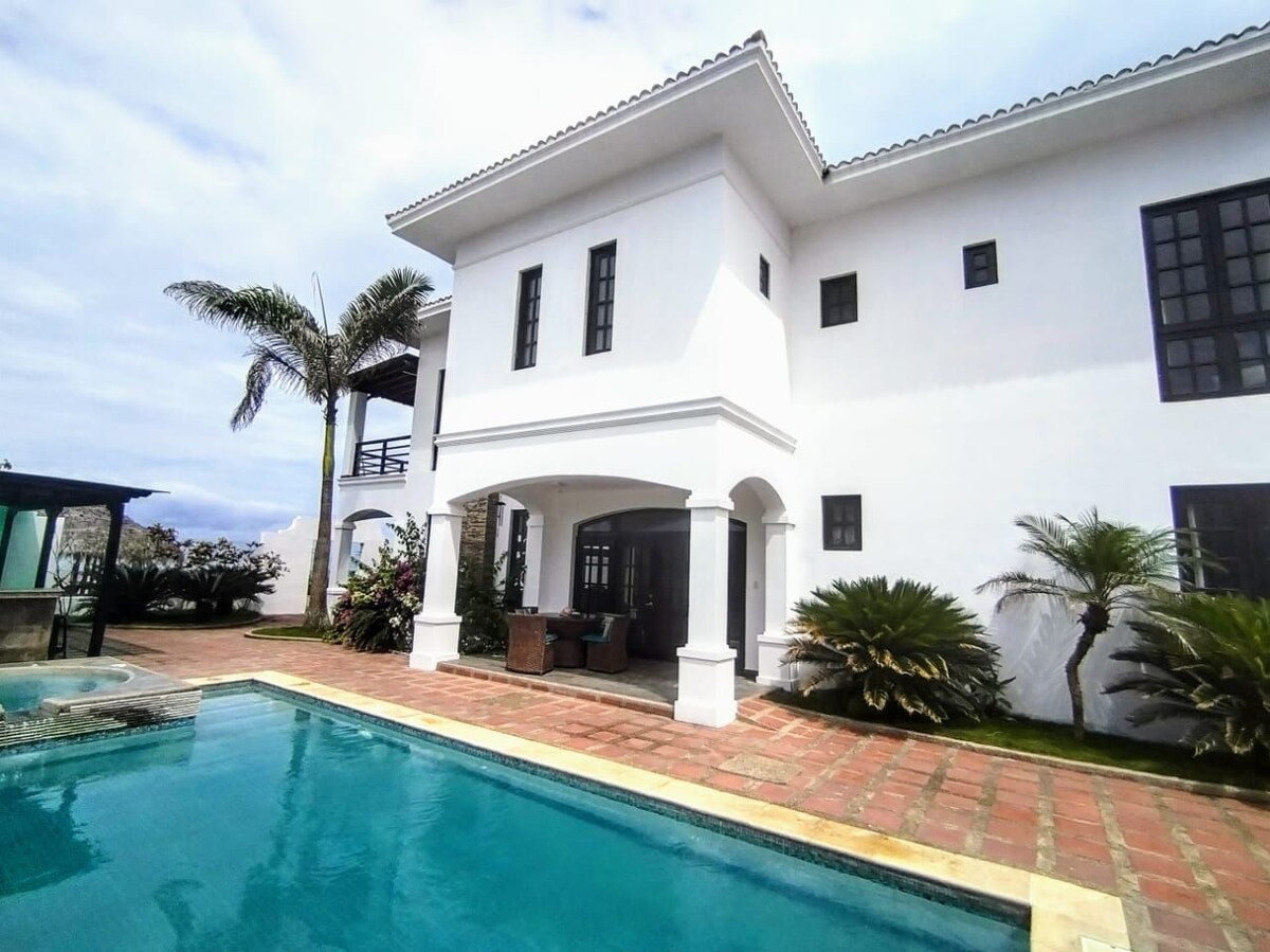 Luta dig tillbaka och koppla av i detta lugna, eleganta boende. Vårt lilla hus ligger i San Lorenzo, Manta. Detta pensionat ligger i en grindad fastighet där det finns 4 andra boenden. Vårt sociala område har en pool, uppvärmd jacuzzi, grillplats, utomhus vardagsrum för att träffa andra gäster och vi är bara 2 minuters promenad till stranden. Huset har många bekvämligheter som kommer att få dig att känna dig bekväm.