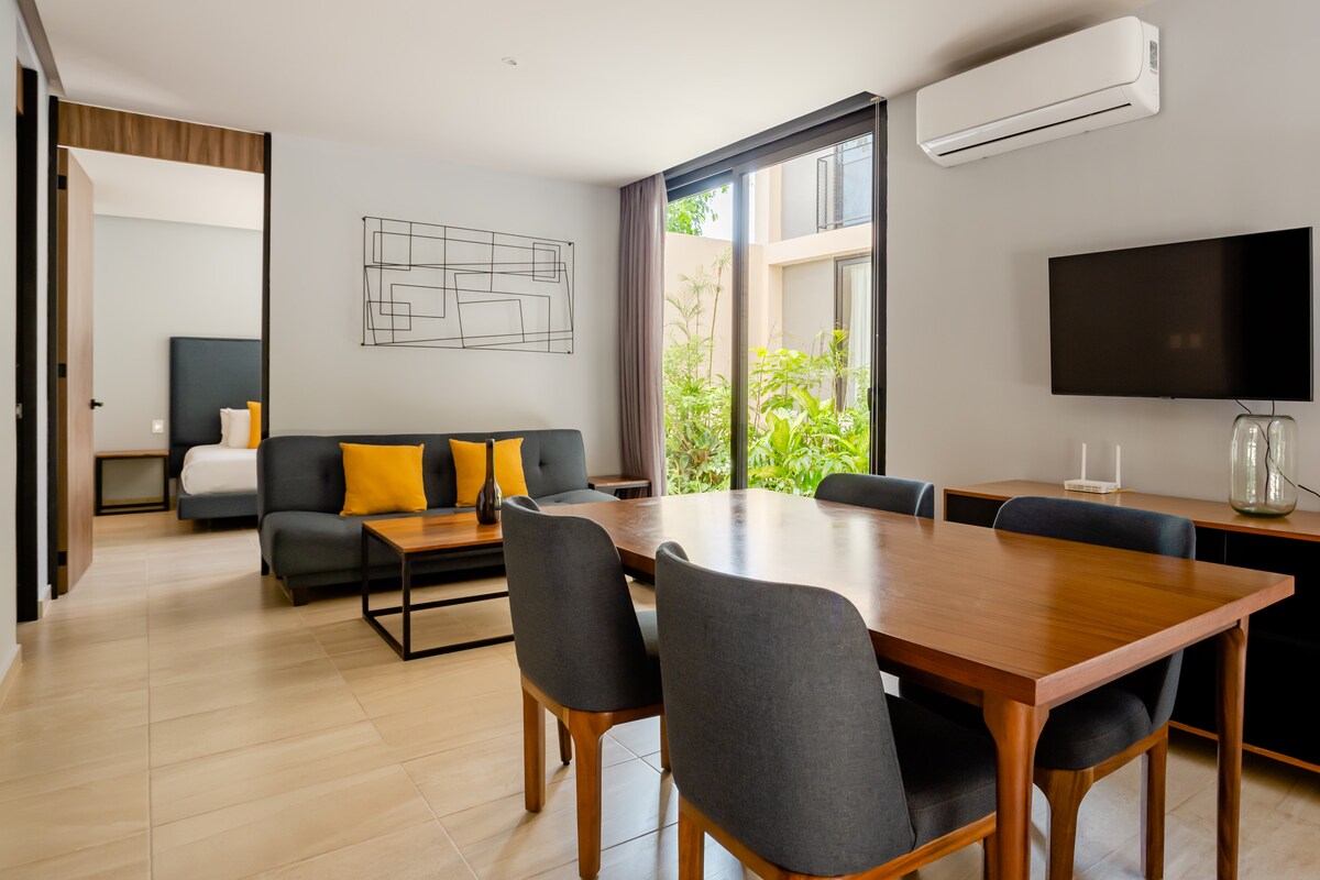 Välkommen till ditt hem hemifrån! Inbäddat i ett helt nytt modernt torn i centrala Playa del Carmen, är vår 1BR lägenhet den perfekta kombinationen av komfort och stil. Det är en del av en bostadsrätt som erbjuder det bästa av två världar: intimiteten och rymligheten i en lägenhet, tillsammans med exceptionella tjänster för att göra din vistelse otroligt bekväm.