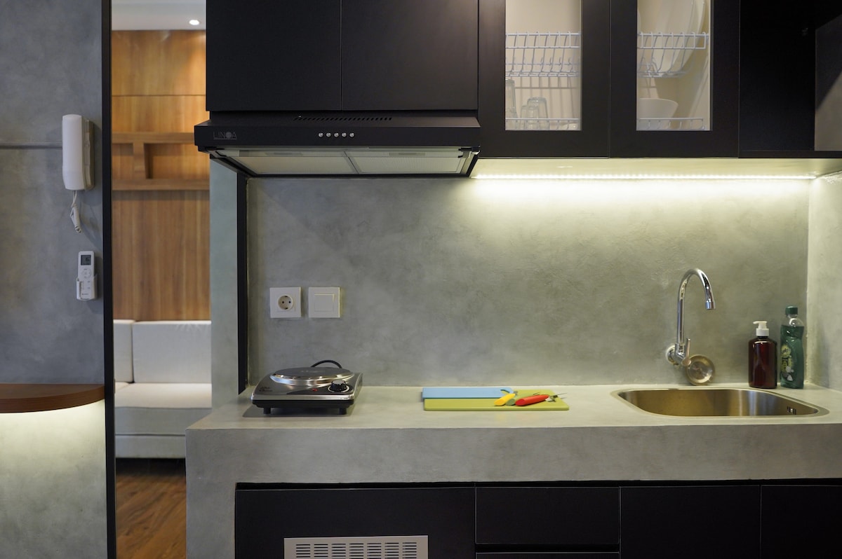 Luta dig tillbaka och koppla av i detta lugna, eleganta boende. Vår lägenhet är helt ny och inredd minimalt för komfort. Vi accepterar längre vistelse (veckovis/månadsvis) till ett specialpris, fråga oss! Det finns ett utomhuscenter, stormarknad, över 90 restauranger och butiker strax under lägenheten. Allt detta ligger bara 1 minuters promenad bort! Vi ligger också nära Aloha Pantai Pasir Putih, Pantjoran PIK, By The Sea och PIK 1. Husdjur är inte tillåtna i denna byggnad. Din komfort är vår främsta prioritet!