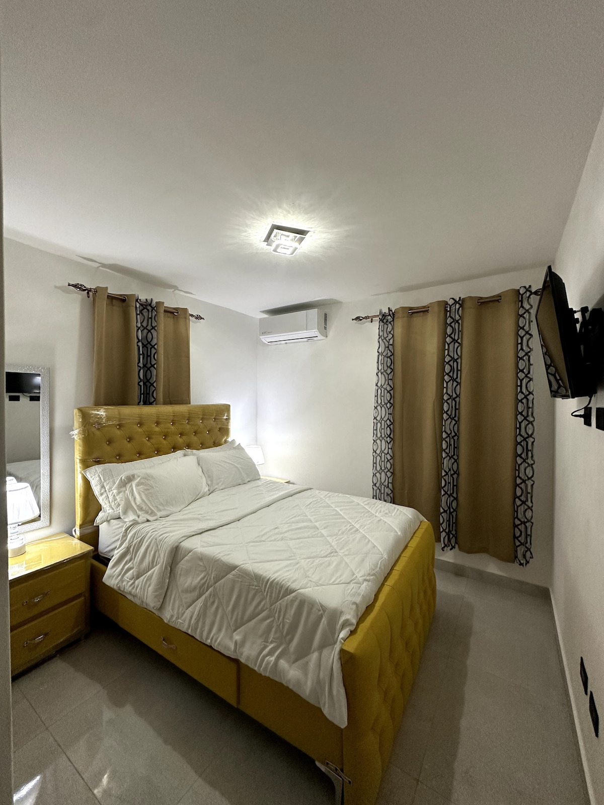 Ny och modern lägenhet, bekvämt och väl upplyst utrymme, välutrustat kök och ett rent och rymligt badrum, privat och säker parkering med säkerhet dygnet runt, belägen 10 minuter från flygplatsen, stadens centrum, perfekt för att njuta av ett bekvämt och lugnt utrymme med hela din familj, utrustad med 3 sovrum med wifi-TV och luftkonditionering, Vi har en privat evenemangslokal, pool, villa, gym, grillplats, lekplats för barn, basketplan, wifi.