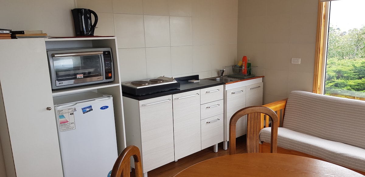 Vi ligger 6 km från centrala Punta Arenas, vid stranden av Magellans sund. Det är ett litet hus att njuta av ensam eller som ett par. Lugnt och med den bästa utsikten och de vackraste soluppgångarna och solnedgångarna i södra delen av världen. Centralvärme, bekväma faciliteter, privat parkering, kabel och WiFi om du behöver. Frukost ingår och är mycket god, även om ni måste laga den själva.