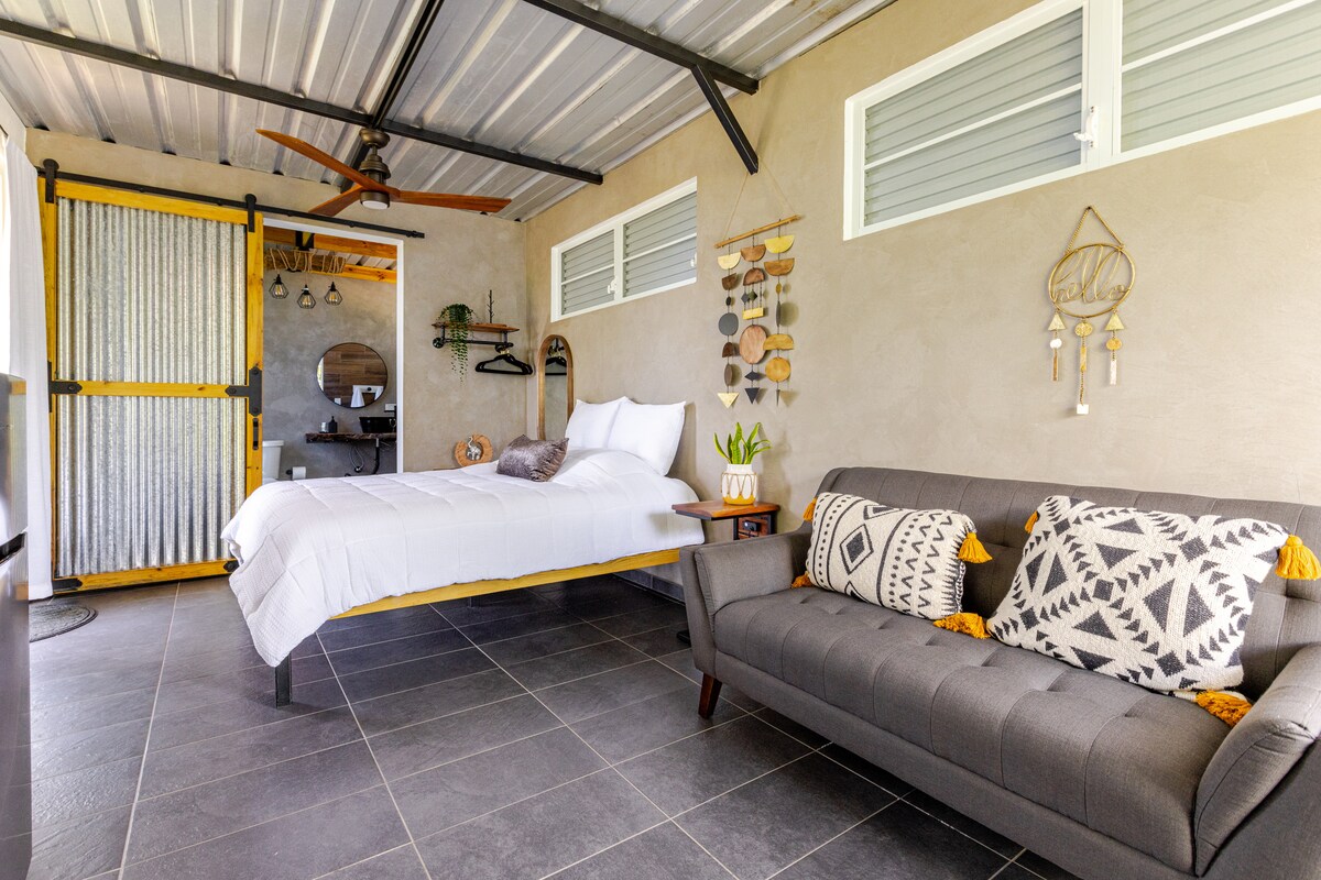 Denna gÀstsvit, pÄ nedre vÄningen i vÄr exklusiva lyxvilla, Casa Encanto, Àr den perfekta tropiska tillflyktsorten. BelÀget i de fridfulla och frodiga foten av El Yunque regnskog, belÀget i Luquillo med mÄnga nÀrliggande attraktioner. Du har enkel tillgÄng till centrala Luquillo, El Yunque National Rainforest, Luquillo Beach, Caribali Adventure Park, Las Paylas, charterbÄtturer, snorkling, linbanor och mycket mer. GÀstsviten Àr helt solenergi med Tesla-batterier och reservvatten