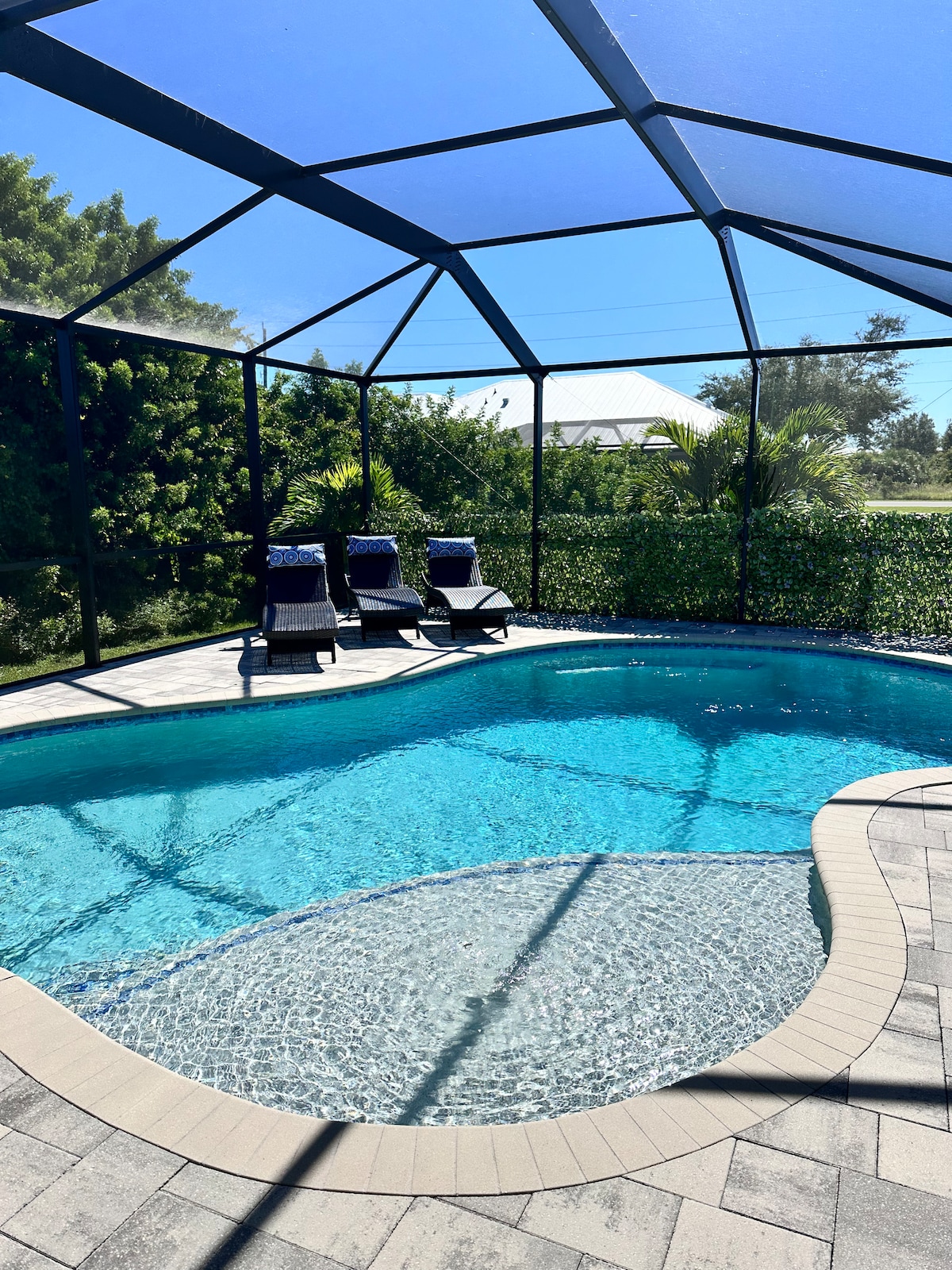 Villa510 är en nybyggd tillflyktsort vid vattnet som är idealisk för längre vistelser i Cape Coral. Njut av lugna utsikter över saltkanalvatten och sjökor från lanai, koppla sedan av i din privata uppvärmda pool och spa – perfekt året runt. Uteköket och lanai skapar en enkel, bekväm daglig rutin. Inuti erbjuds tre privata sovrum med badrum, en liten stuga med valfri luftmadrass, öppet vardagsrum och TV i varje rum. Nära till shopping, restauranger och stränder – perfekt för snöfåglar som söker komfort och lätthet.