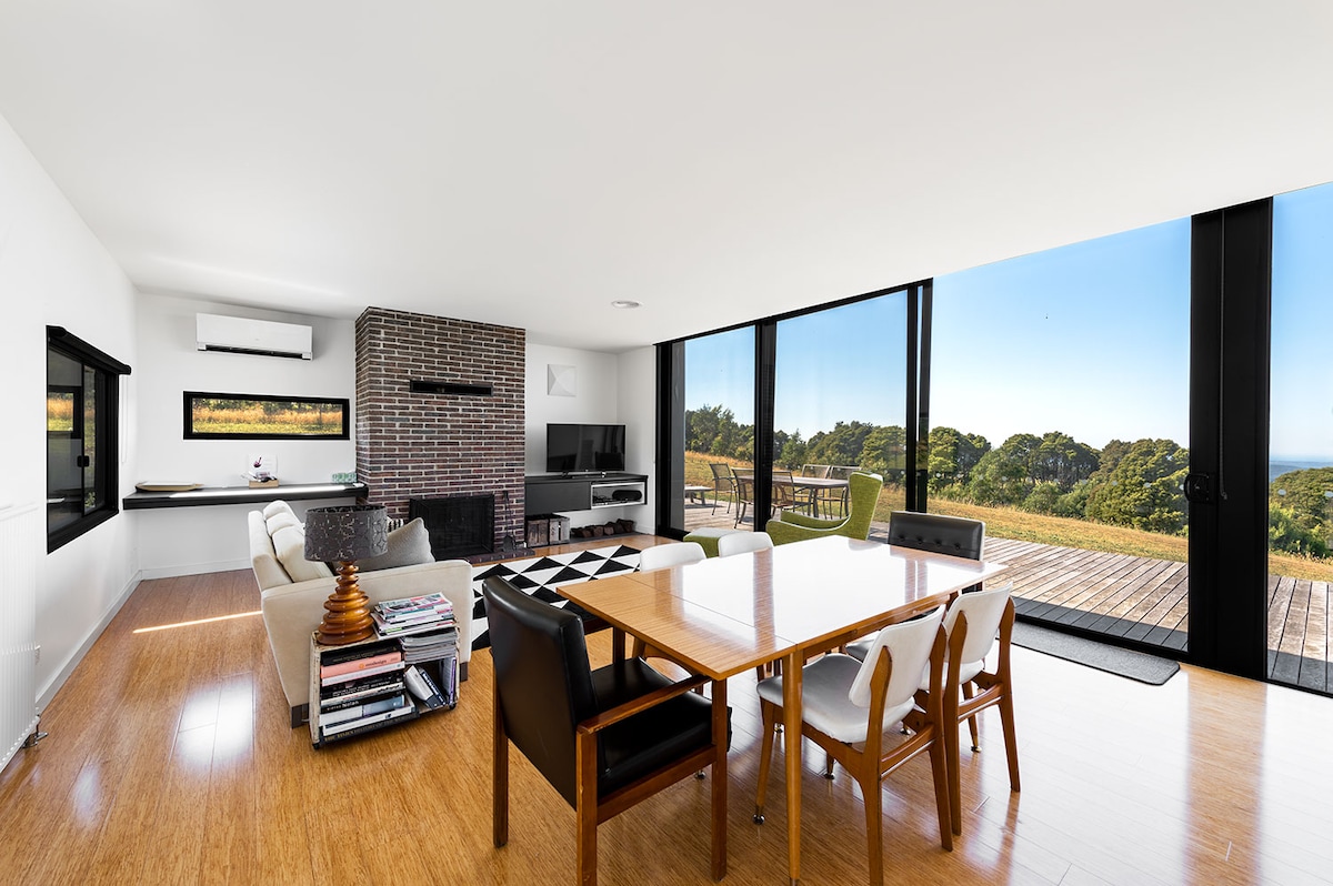 Blue Studio är omgiven av inhemsk vegetation och 5 minuter från stranden, en oas på Great Ocean Road. Detta 144 kvm stora, 2 sovrum, arkitektritade containerhus, har ett rymligt däck med utsikt över trädgården, fåglar, djurliv och böljande slätter. Detta mysiga hus ligger på en lugn väg utan genomfart, som slutar vid klipptoppen med utsikt över Södra oceanen. Bakstranden erbjuder en spektakulär utsikt över Bay of Islands Coastal Park. Ikoniska stränder ligger 10 minuters bilresa bort.