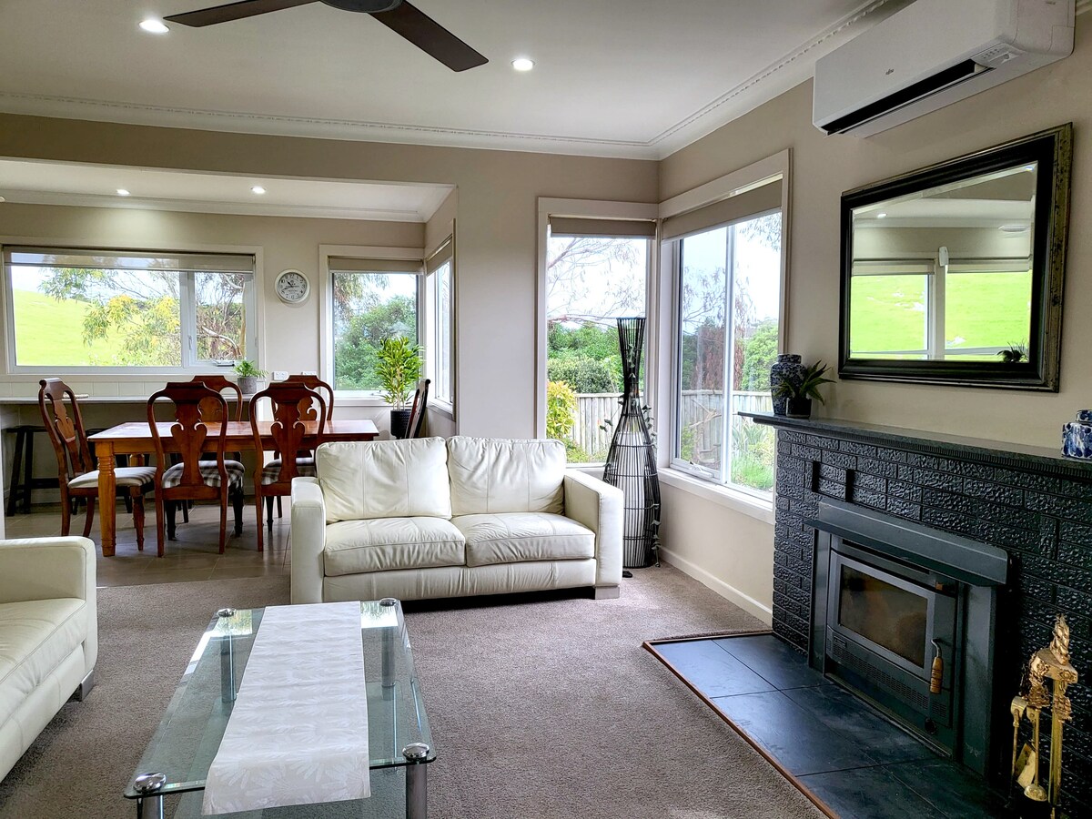 Luta dig tillbaka och koppla av i detta lugna, eleganta boende. Med fantastisk utsikt över Merri River Valley och Warrnambool City Views kommer du att bli kär i lugnet och lugnet i vår vackra studiolägenhet. Det finns ett bra bbq/eldplatsområde. Vi är i utkanten av Nth Warrnambool och bara 3 km till CBD eller 4 km till stranden. Det finns gratis parkering i anslutning till boendet och om du gillar att gå är det bara 15 min eller 2 min bilresa till bageri, butik, stormarknader, pizza, fish and chips, thailändsk och tvättomat.