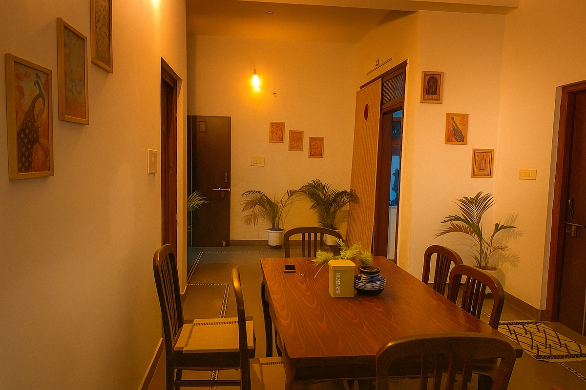 Kutir är din intima tillflyktsort för att sakta ner och känna dig som hemma. Det är ett mysigt 1 sovrumshus med egen Aangan (trädgårdsinnergård) och öppen terrass, perfekt för avkoppling under himlen.